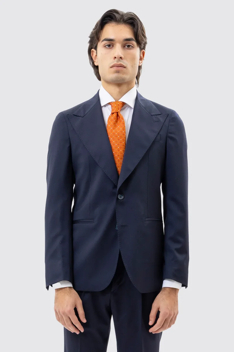 Giacca uomo monopetto blu notte fresco lana super 130’s Vitale Barberis Canonico rever largo a lancia