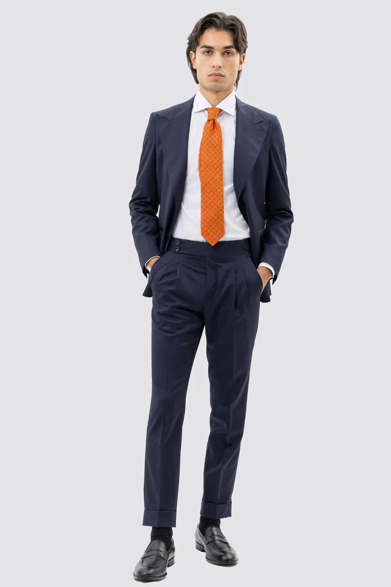 Il tessuto in fresco lana super 130’s è leggero, traspirante e resistente alle pieghe — caratteristiche ideali tanto per la primavera-estate quanto per l’inverno . Con una finitura liscia e una resistenza superiore, garantisce durata e comfort durante l’uso quotidiano.