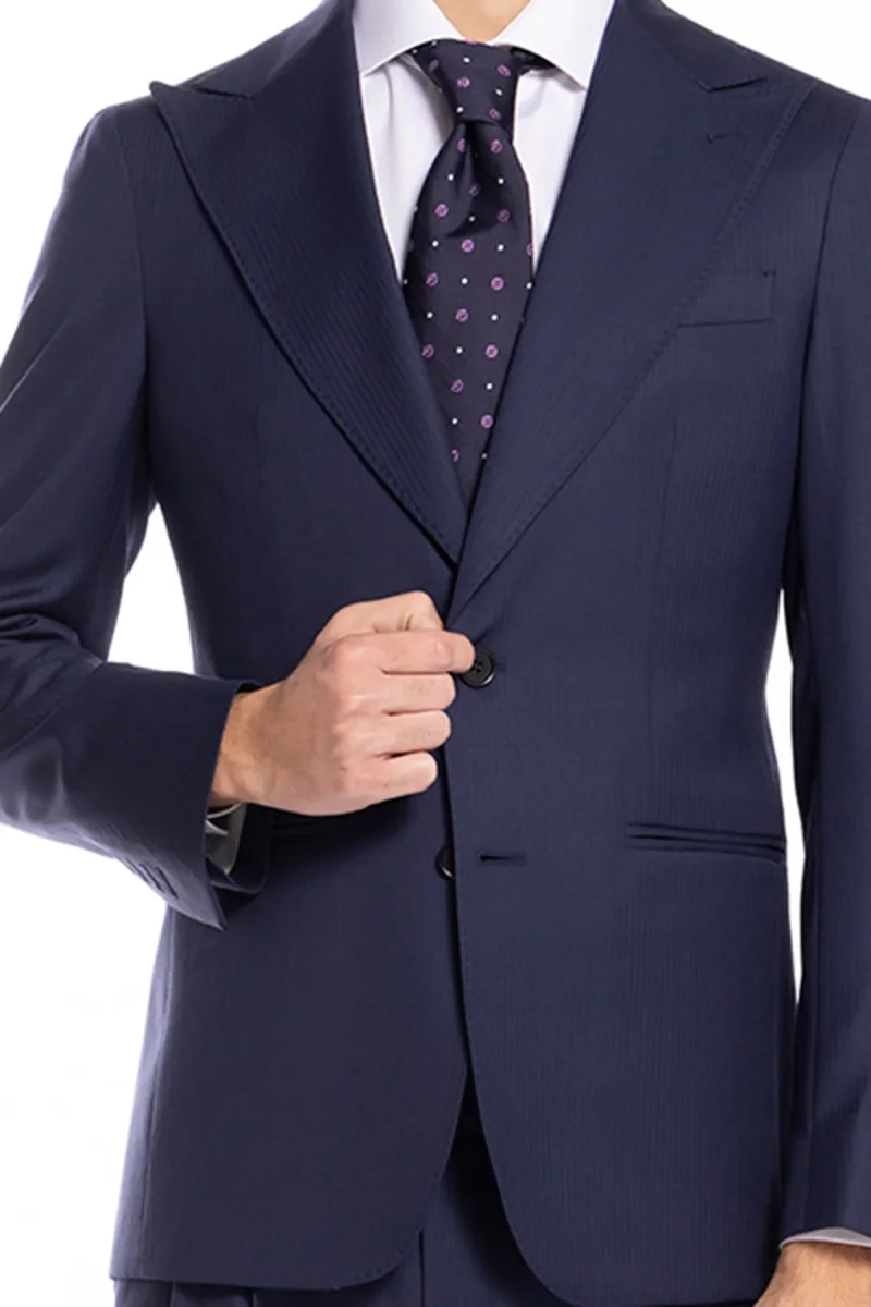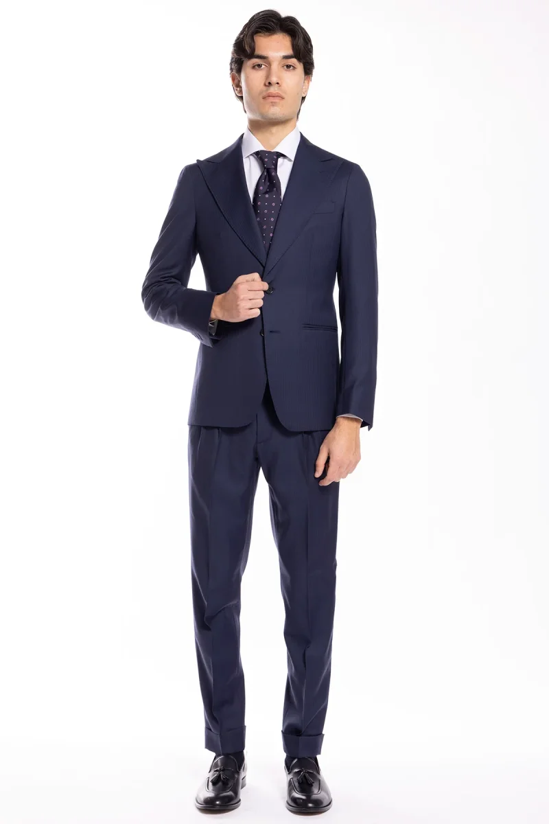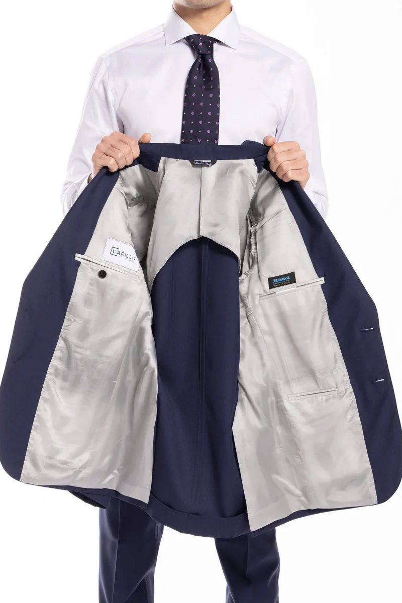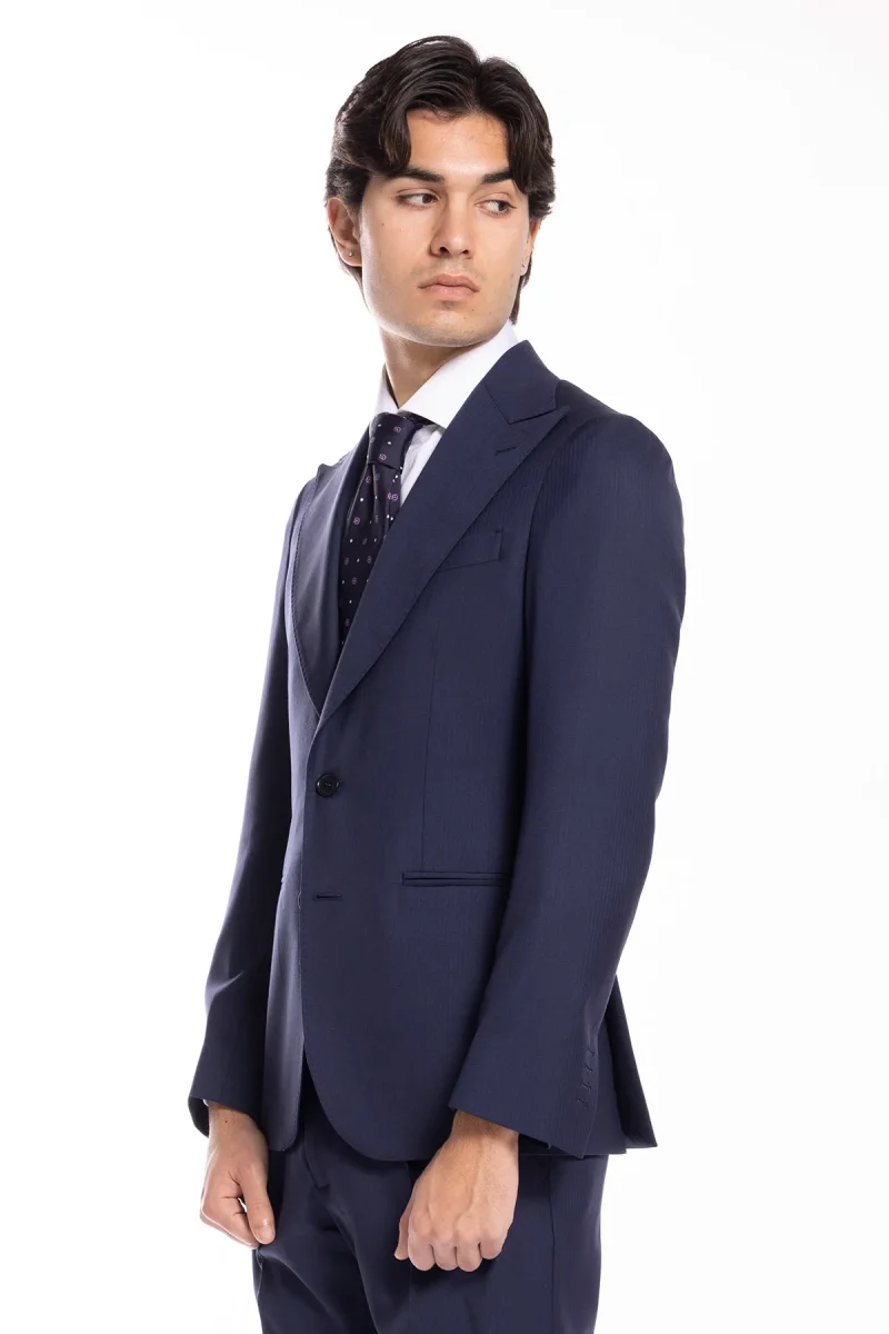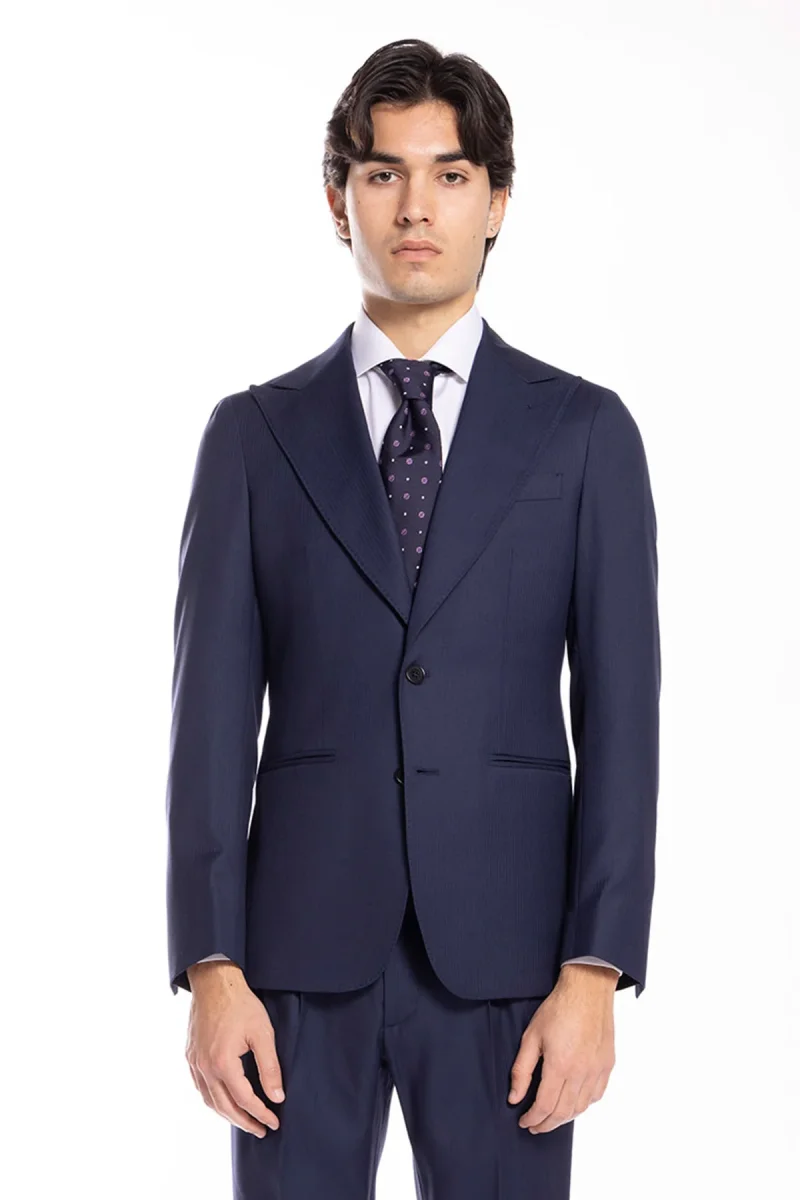 GIACCA UOMO MONOPETTO BLU SPIGATA FRESCO LANA SUPER 130’S BRISTOL TESSUTI NAPOLI REVER A LANCIA
