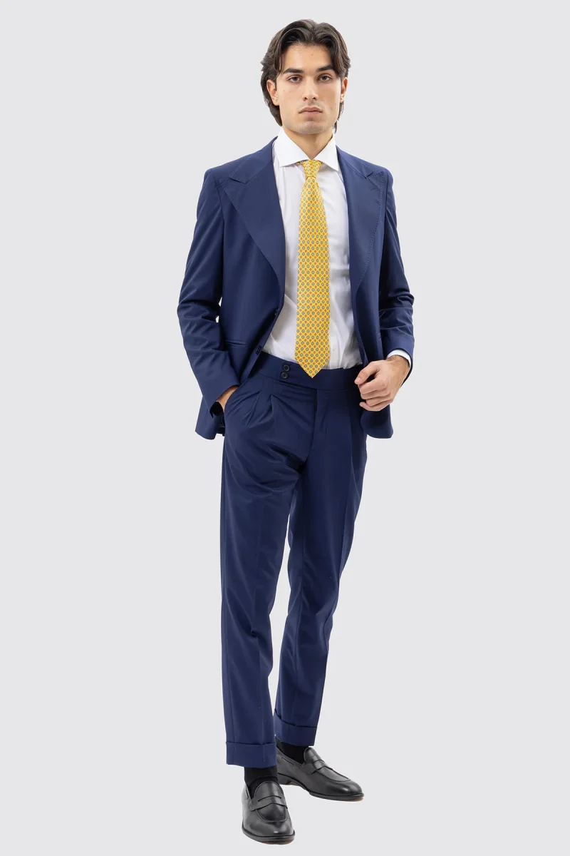 - Colore: Blu tinta unita, una tonalità versatile che si abbina facilmente a pantaloni e camicie di vari colori, ideale per un look elegante ma mai troppo appariscente.