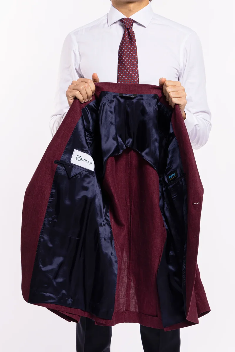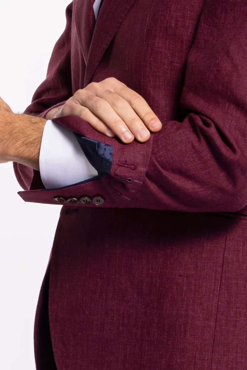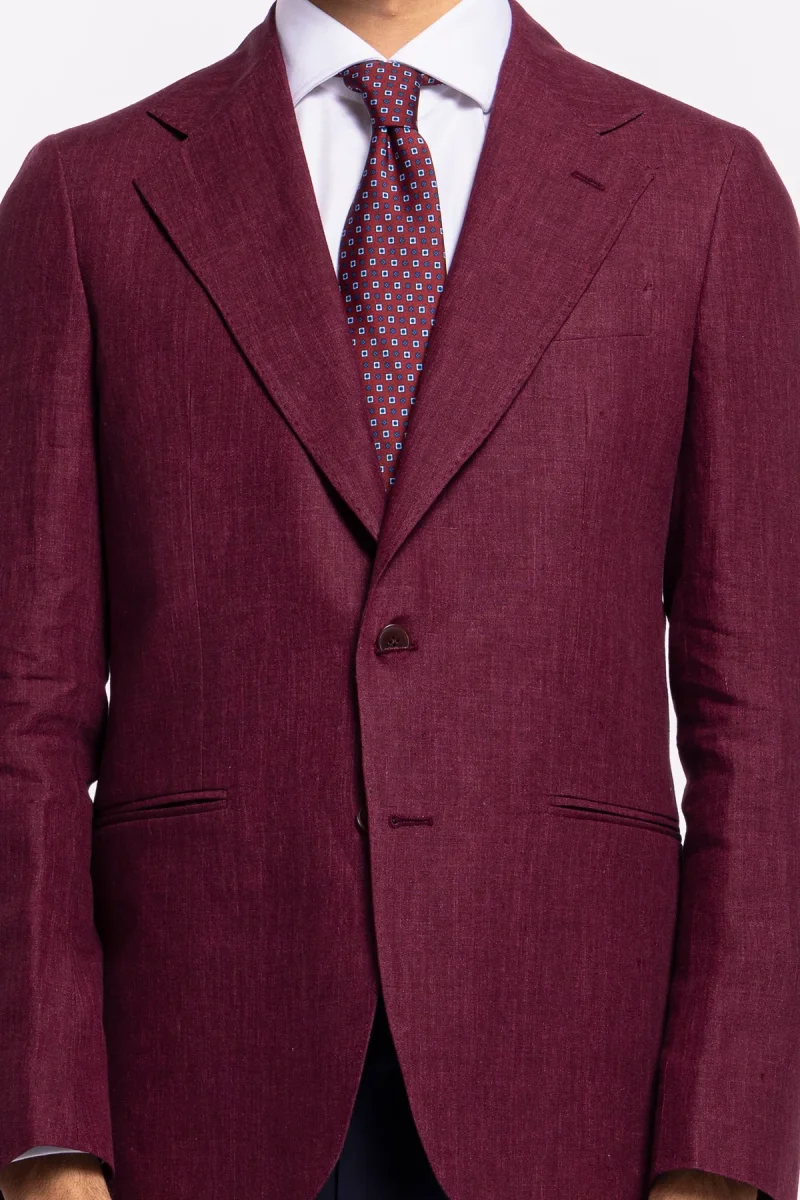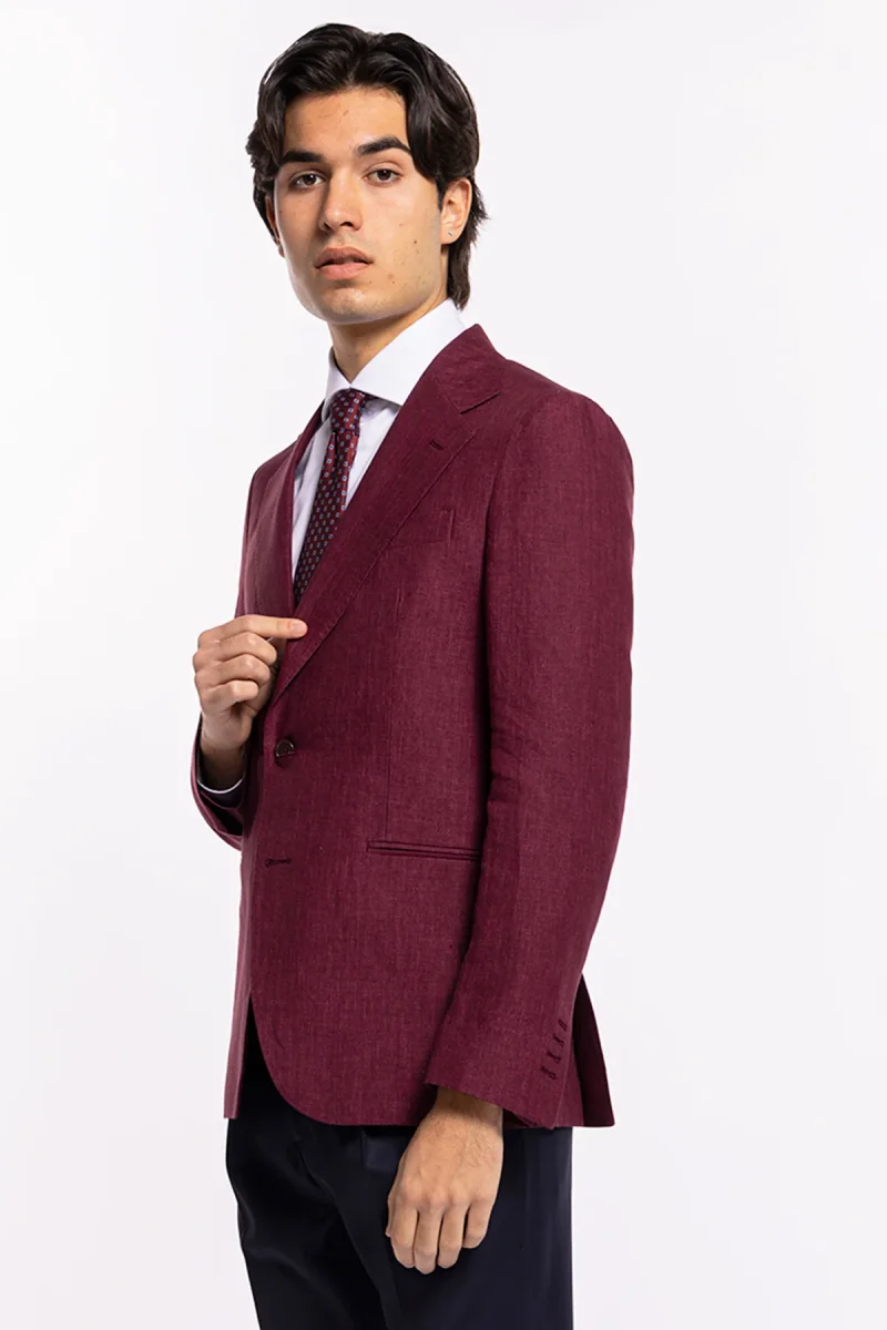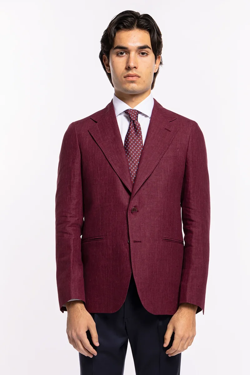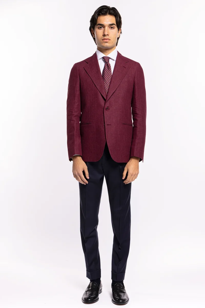 Giacca uomo monopetto bordeaux 100% lino Bristol Tessuti Napoli rever largo classico