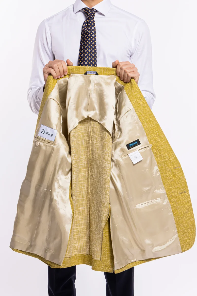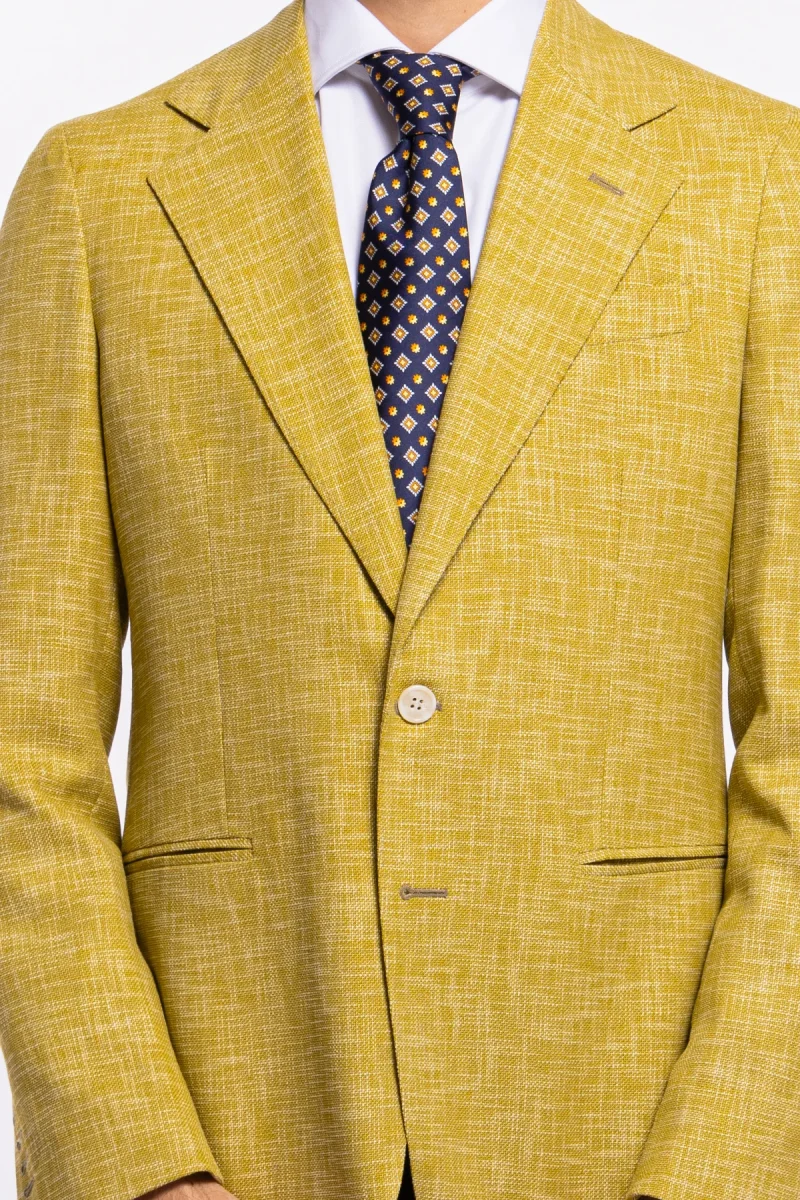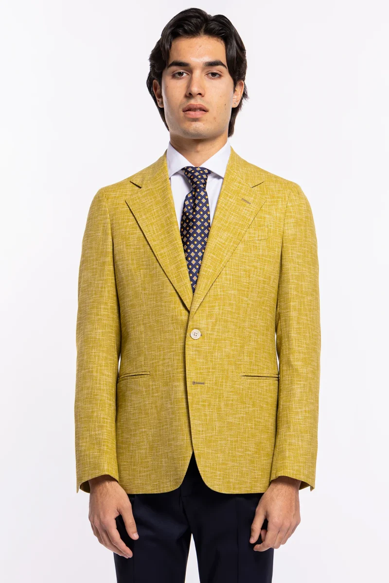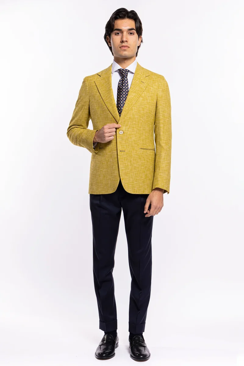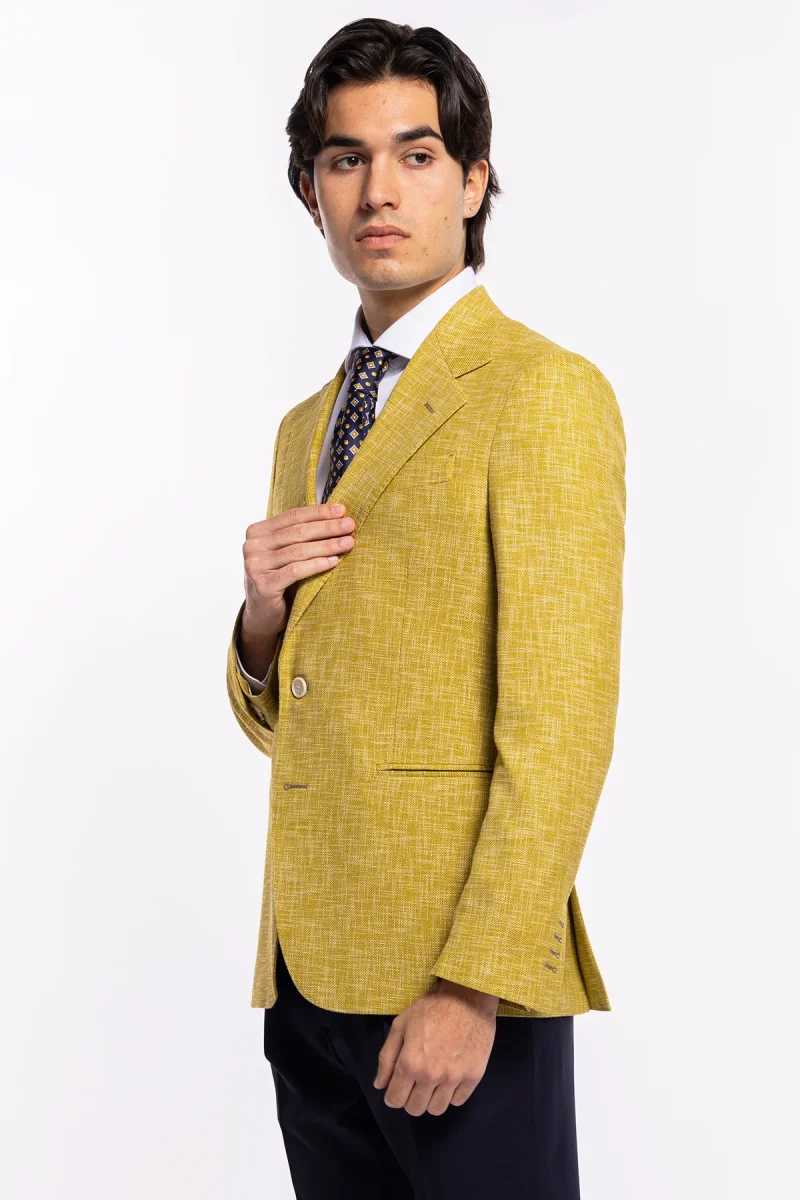 Giacca uomo monopetto gialla effetto melange misto lana e cotone Bristol Tessuti Napoli rever classico largo