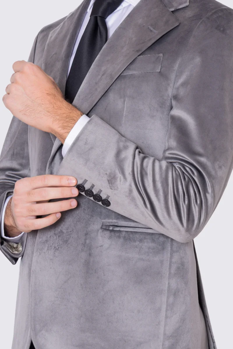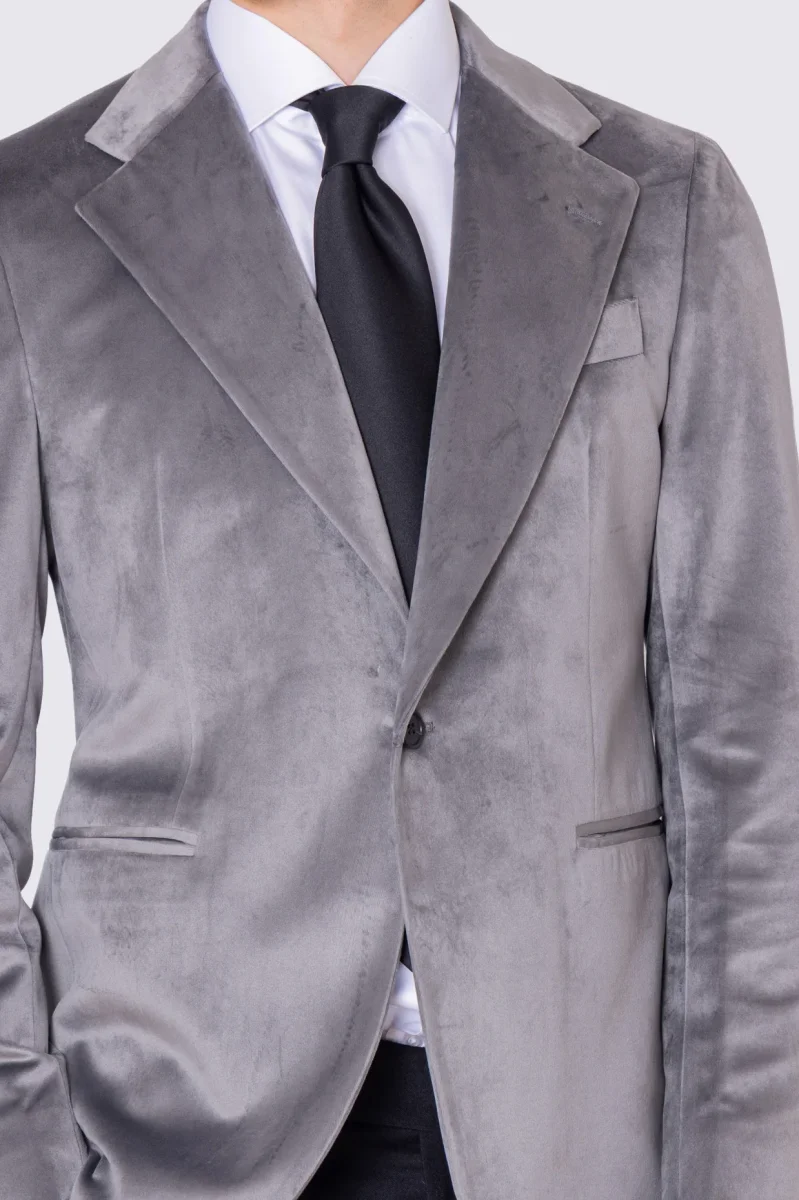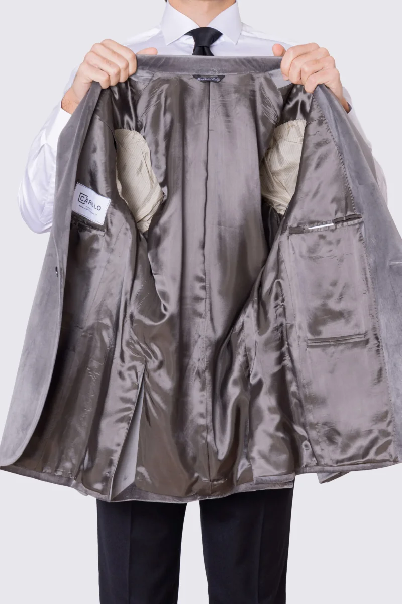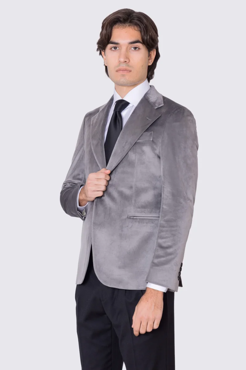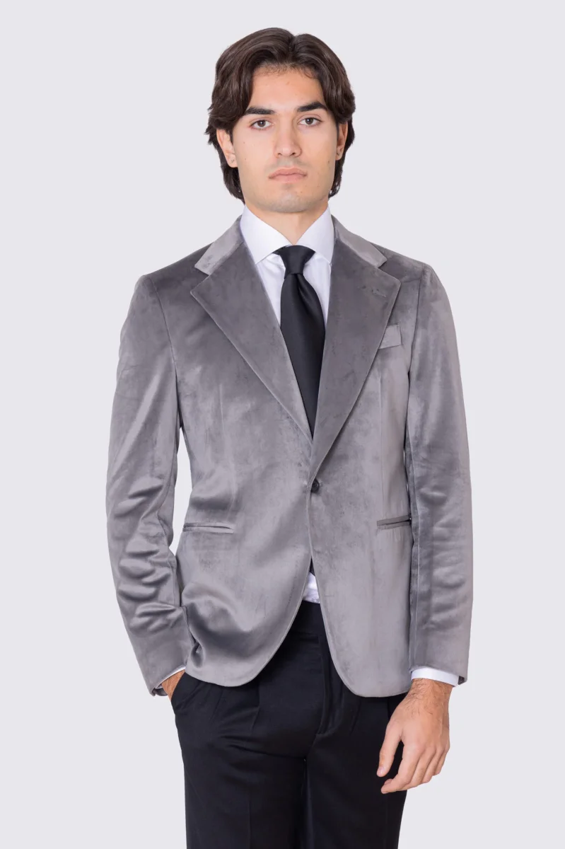 Giacca uomo monopetto grigio chiaro in velluto liscio