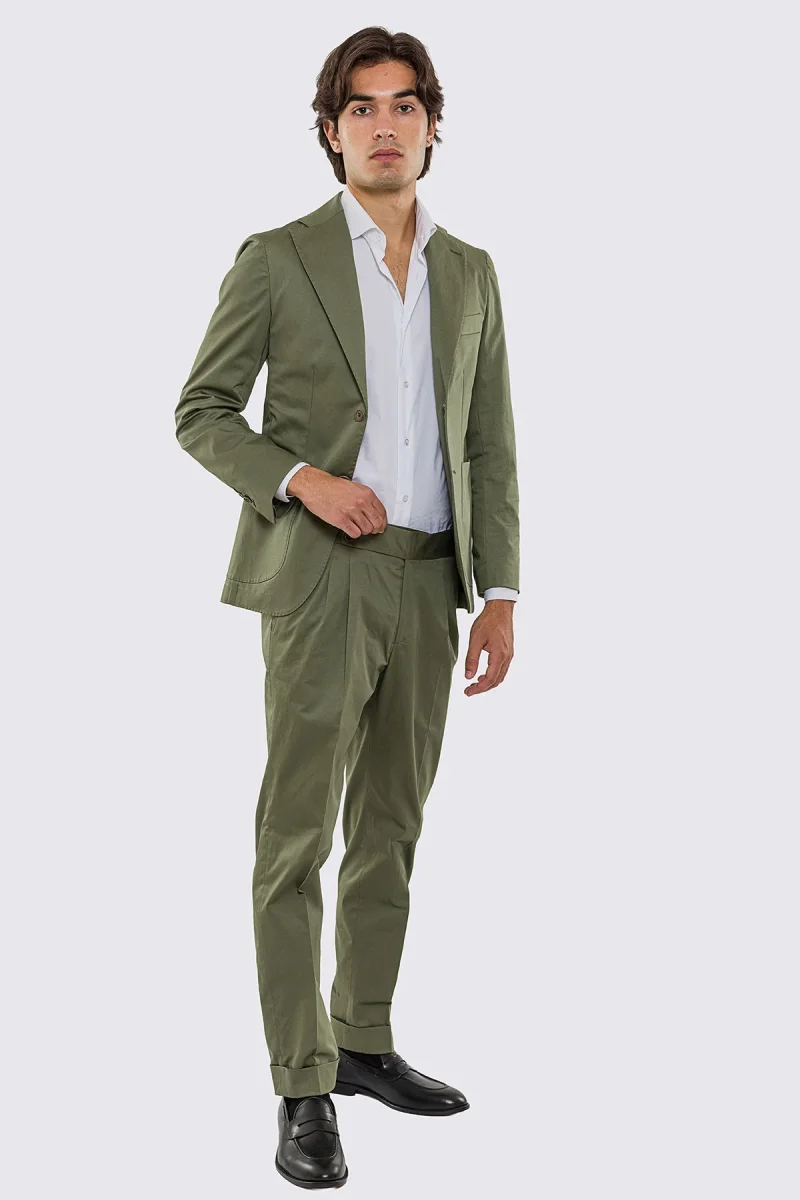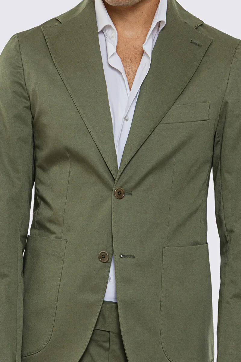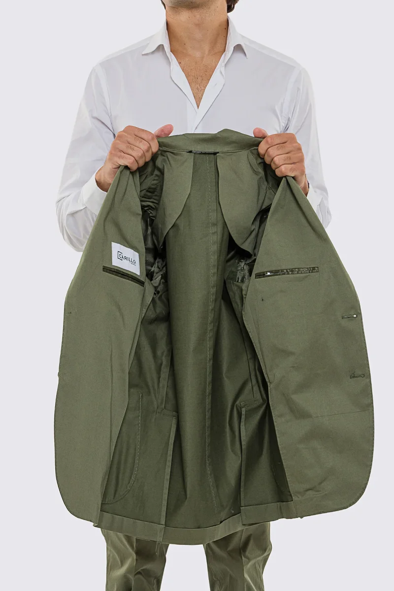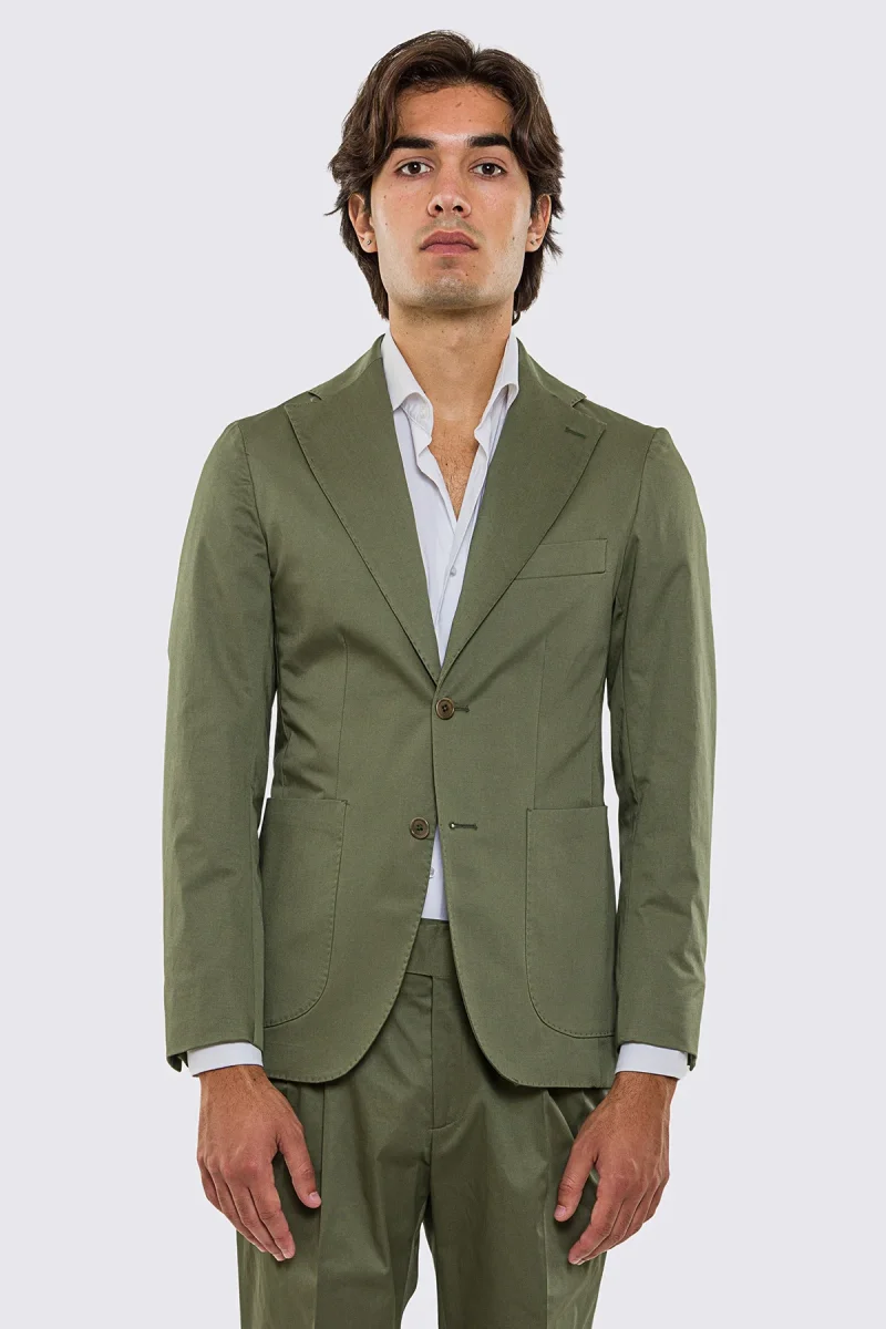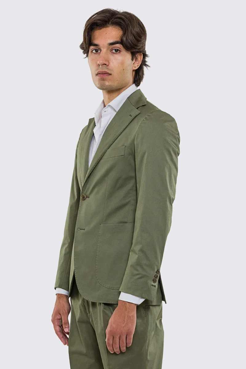 Giacca Uomo Monopetto Verde in Cotone Leggermente Elastico Sfoderata