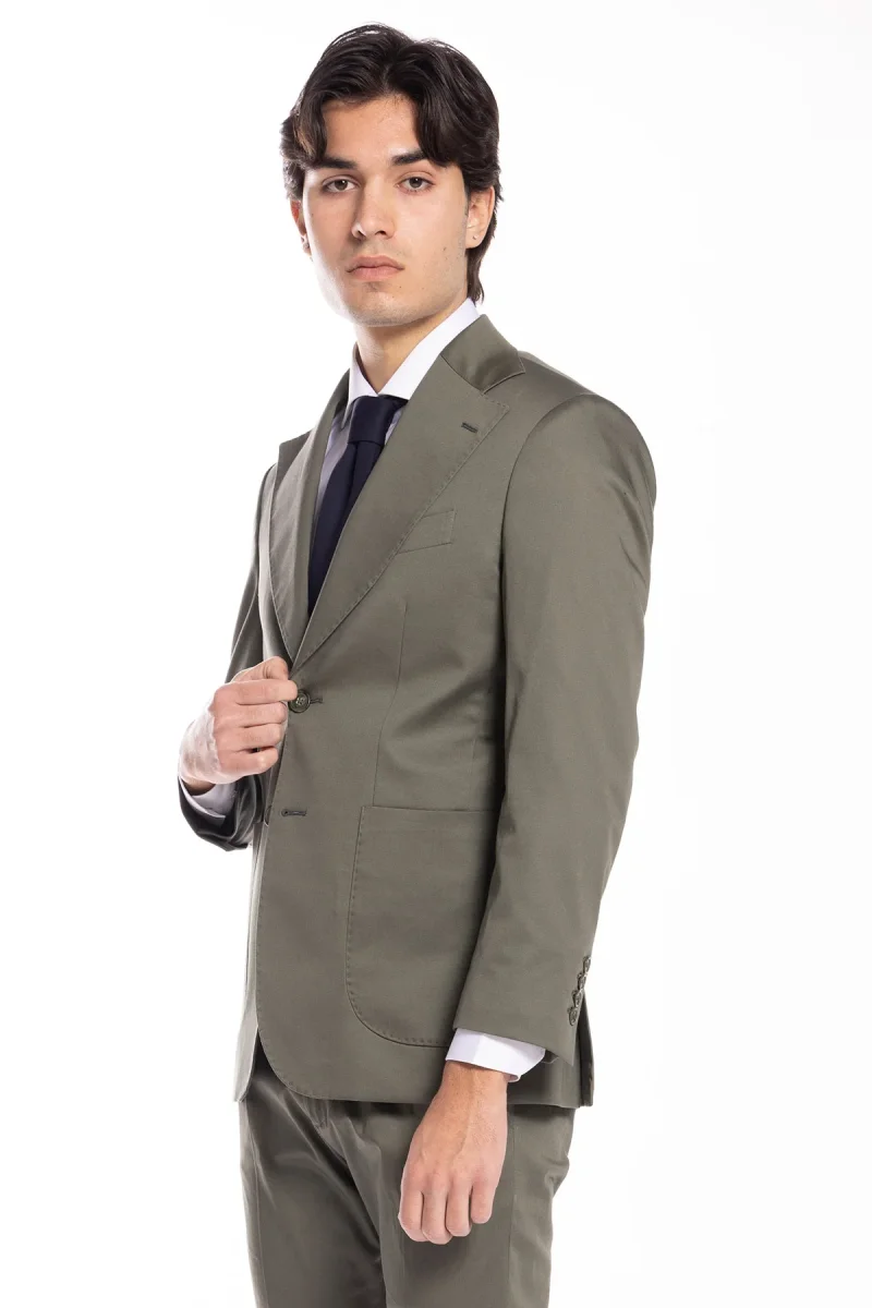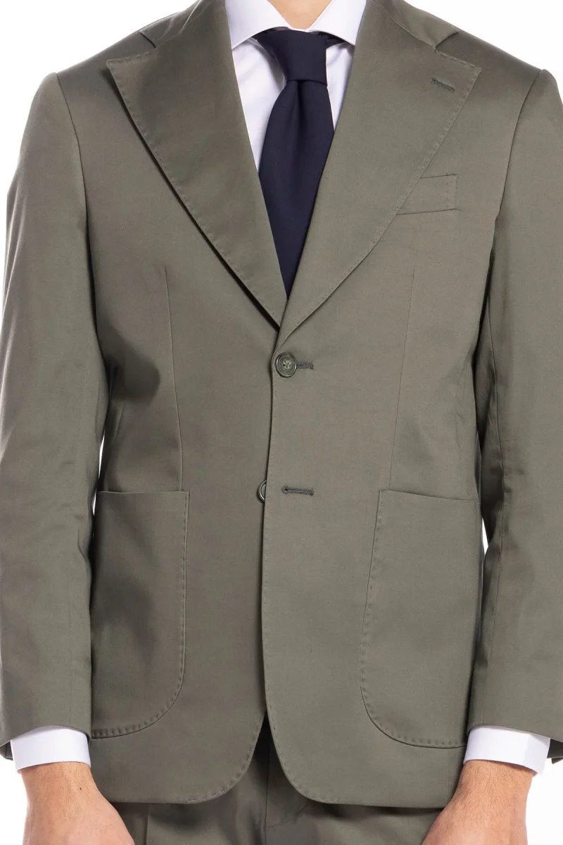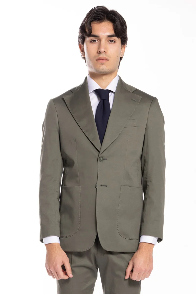 GIACCA UOMO MONOPETTO VERDE MILITARE IN COTONE REVER LARGO TASCHE A TOPPE VESTIBILITÀ REGULAR FIT