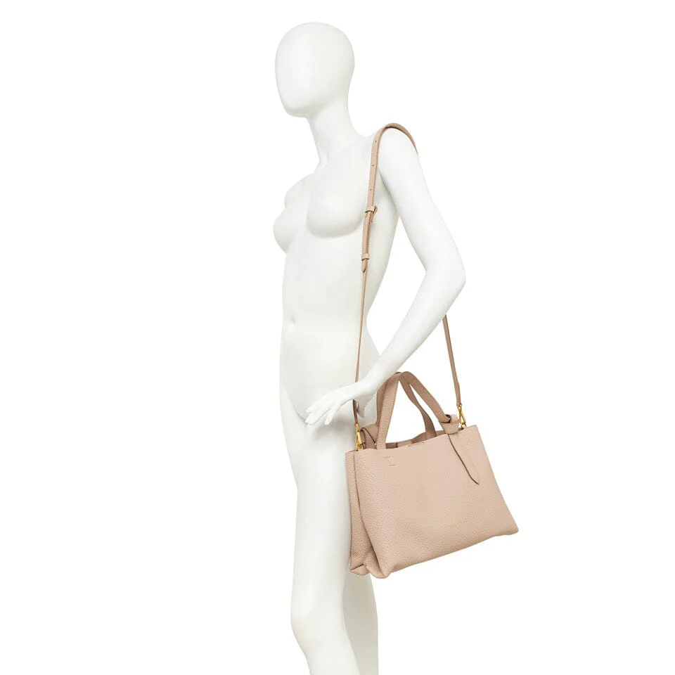 Borsa a mano Amira, di Gianni Chiarini, realizzata in morbida pelle martellata di colore nero. interno sfoderato. All’interno presenta una pochette (non asportabile) in tessuto beige, chiusa da zip. Chiusura centrale con doppio bottone. Tracolla aggiuntiva in pelle, regolabile per poterla indossare anche a spalla.