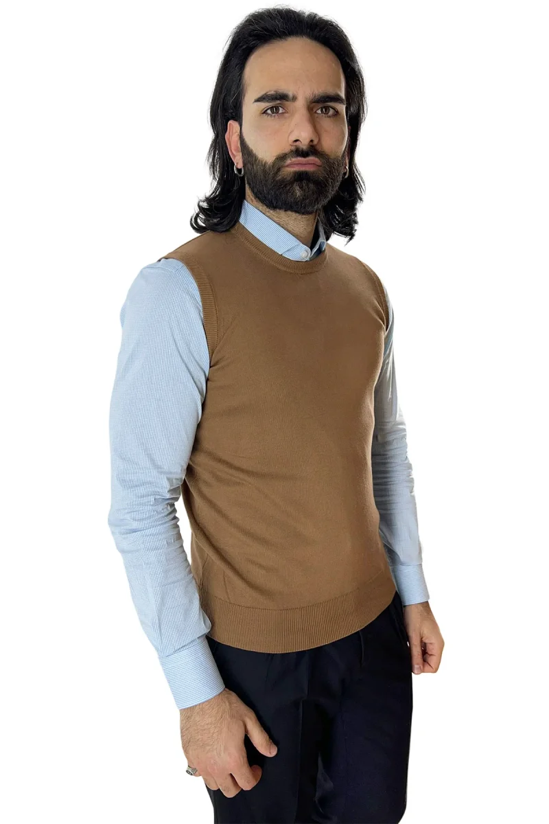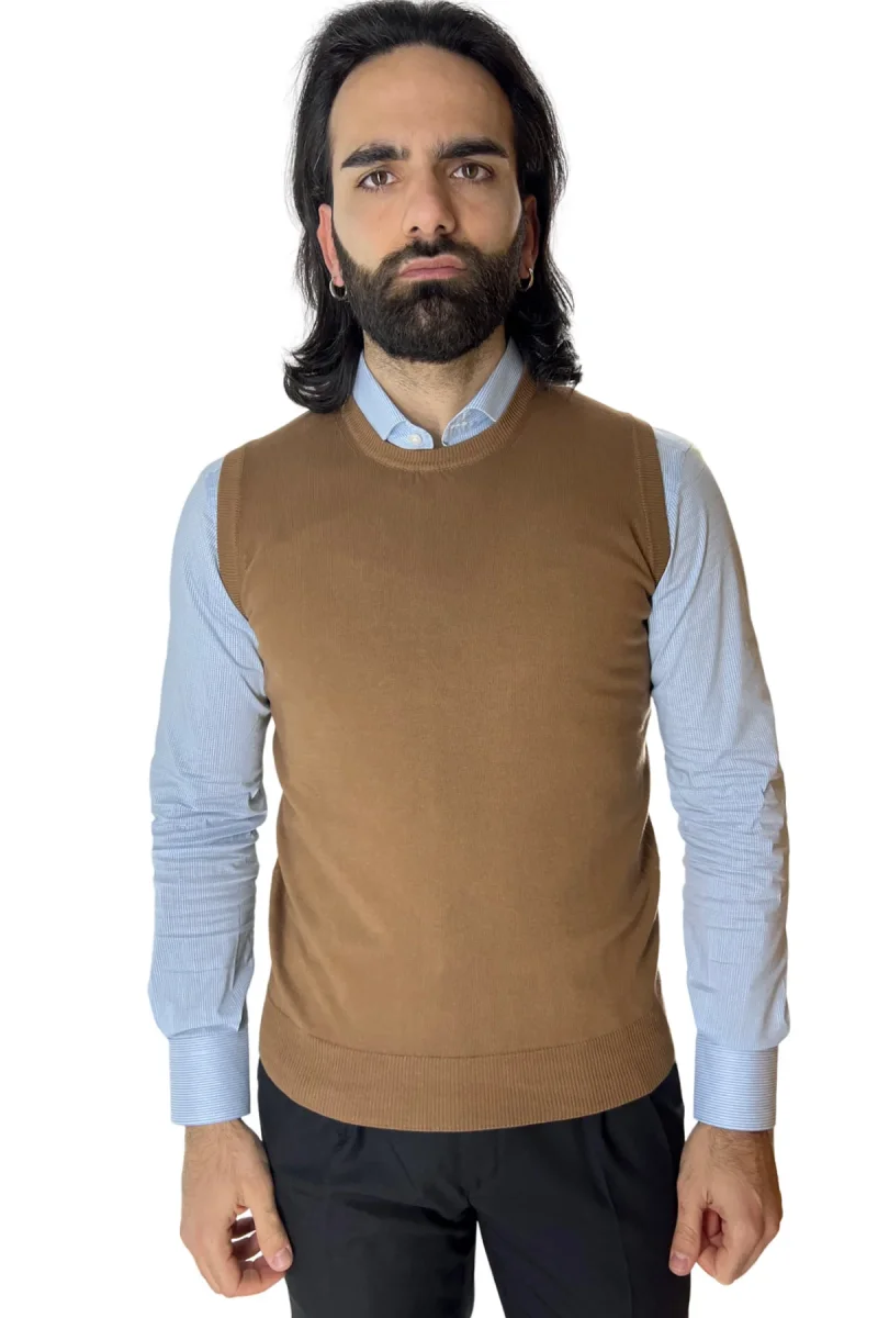 Gilet da uomo cammello 100% cotone di filo finezza 12 tinta unita