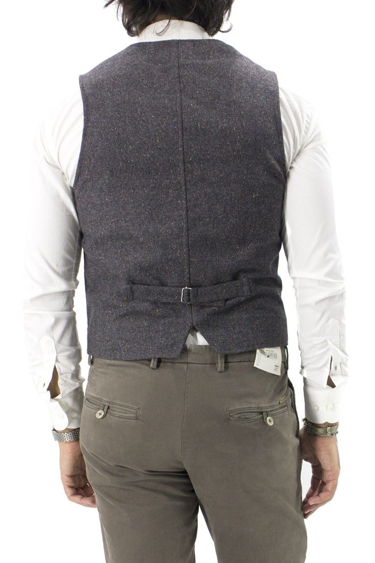aGilet invernale da uomo in lana grigio con effetto tramato multicolor vestibilita slim fit regolabile