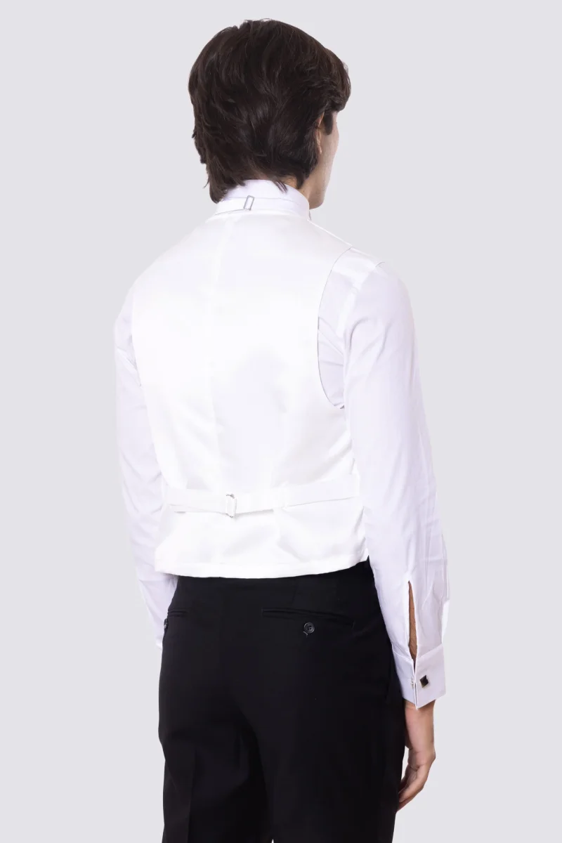 Gilet monopetto bianco in raso da uomo regular fit con tasche a filo e gancio di regolazione sul retro