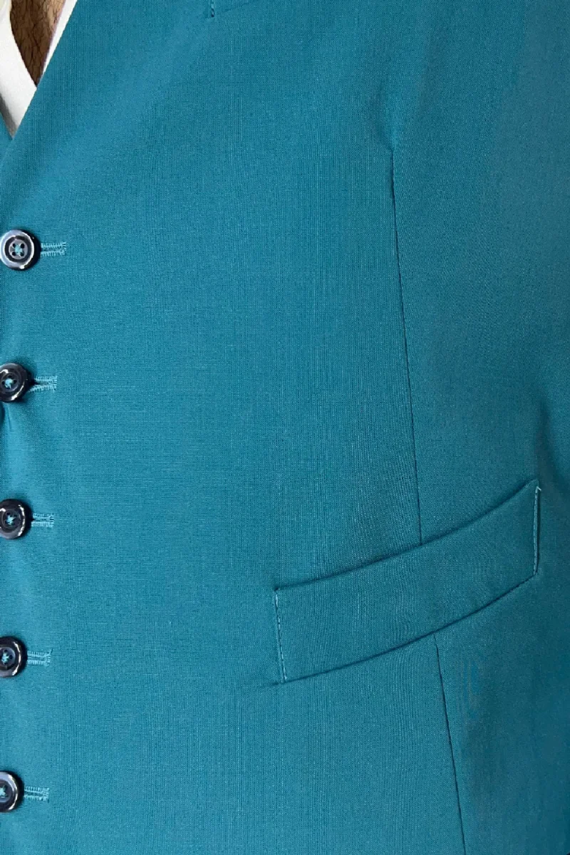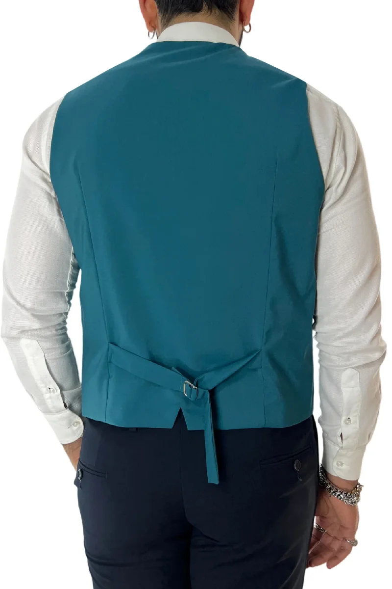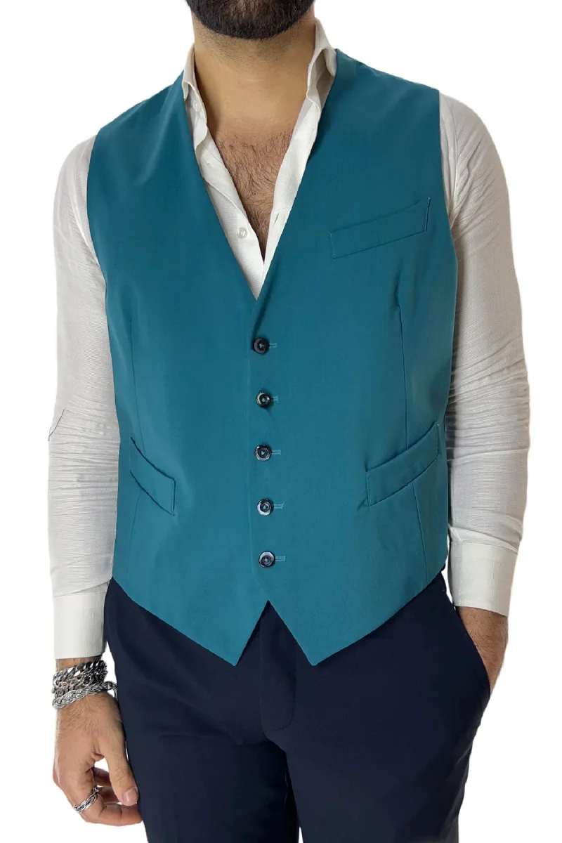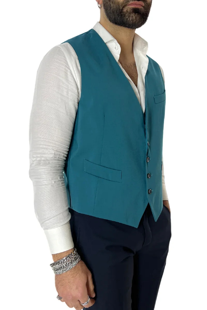 Gilet uomo petrolio monopetto in fresco lana made in italy