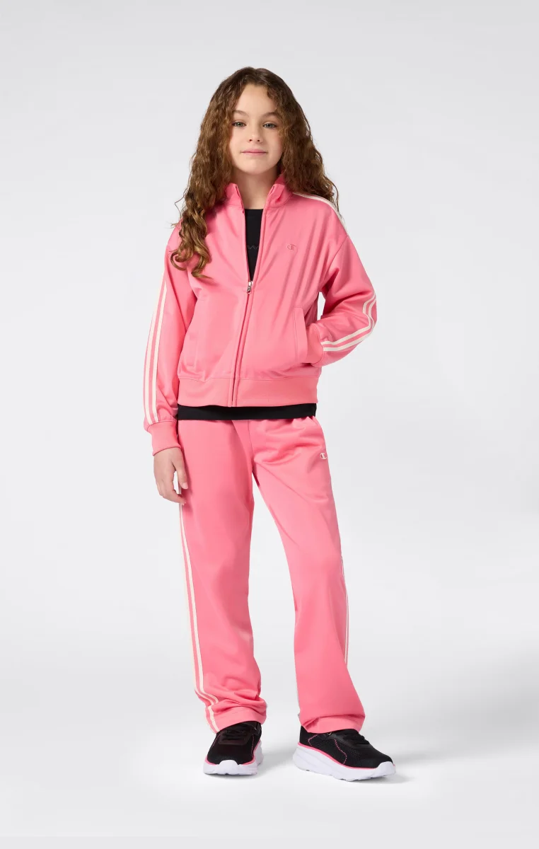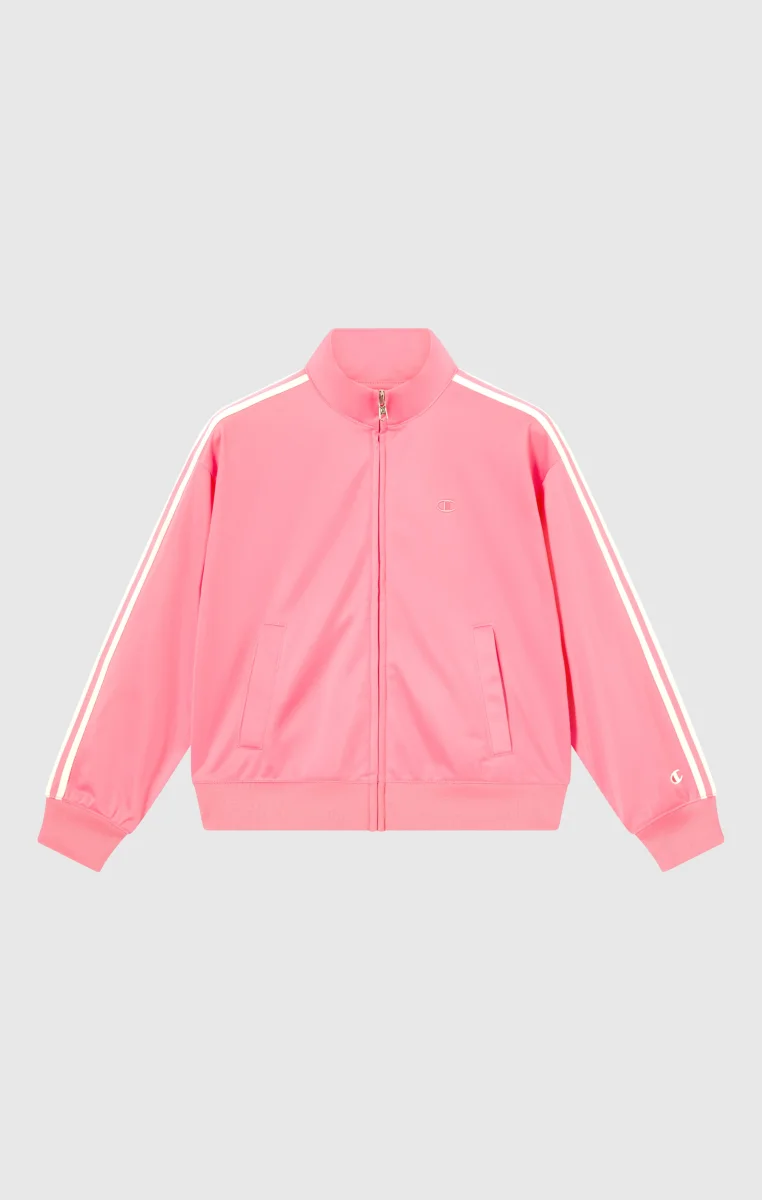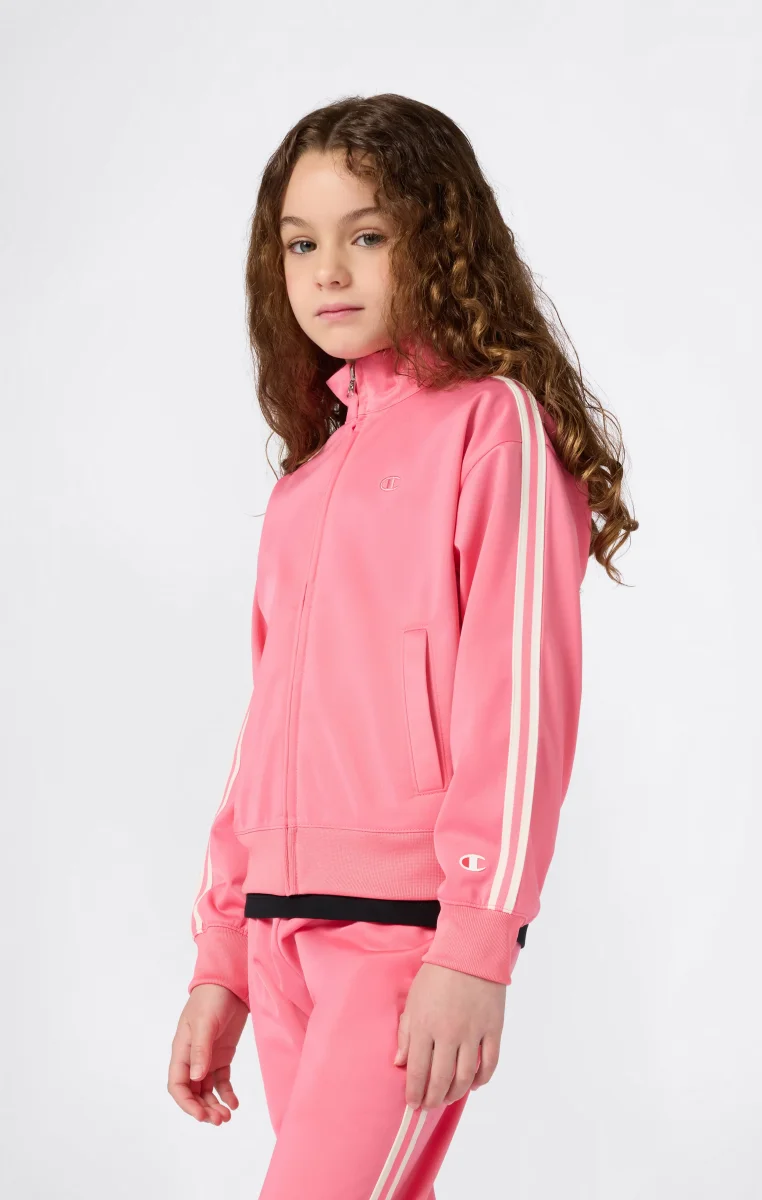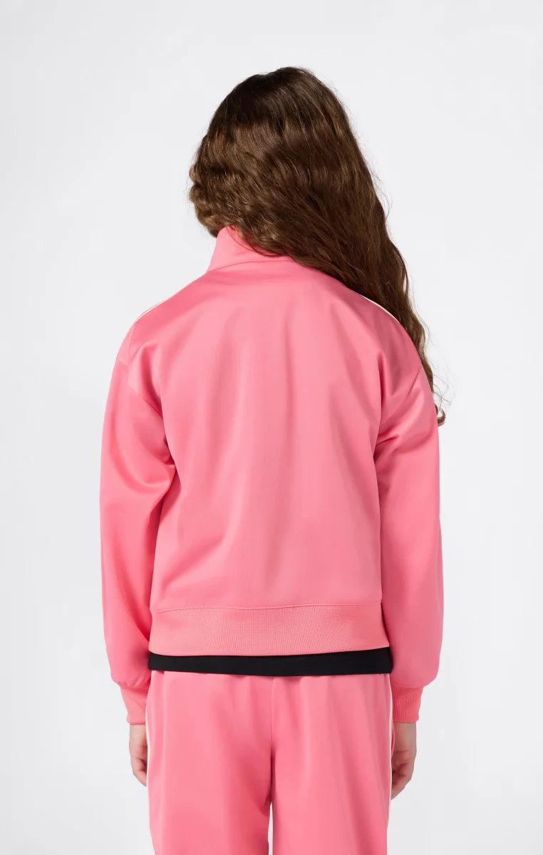Lightweight retro-style track jacket, perfect for layering or wearing as outerwear in transitional seasons. Features a slim fit, sleeve stripes, full zip, front pockets, and tone-on-tone logo for a sporty, refined look.@@@Fabric: Lightweight technical polyester with matte surface, 200 g/m² |Composition: 100% Polyester |Full front zip |Applied bands on sleeves |Side pockets |Tone-on-tone logo |Fit: Slim Fit – snug but not tight. The garment follows the body silhouette along the curves.
