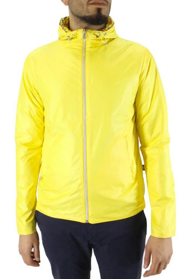 Giubbino da uomo estivo in nylon tinta unita reversibile fantasia con cappuccio vestibilita slim fit