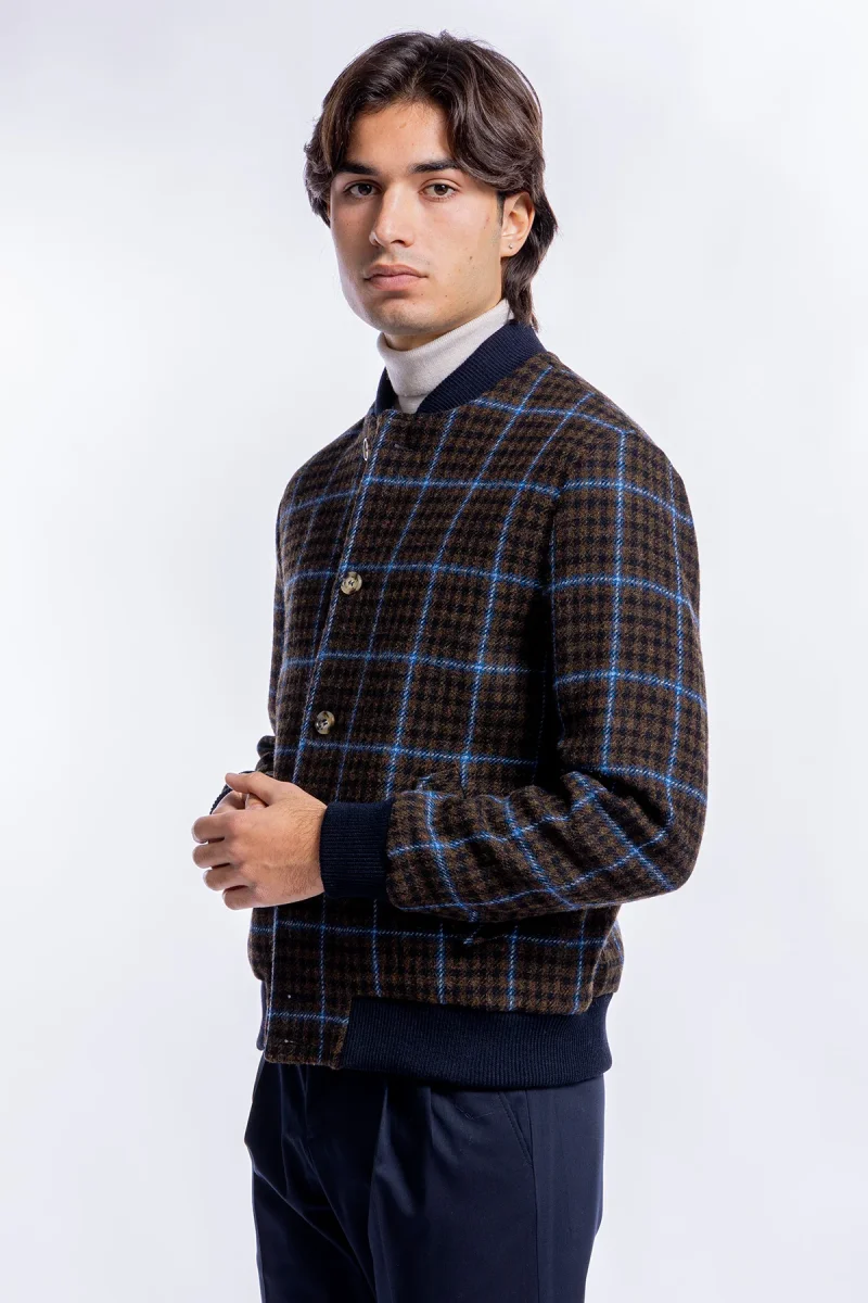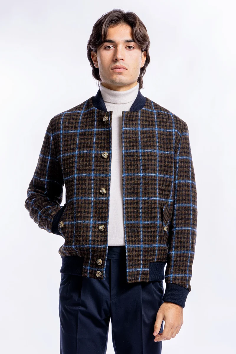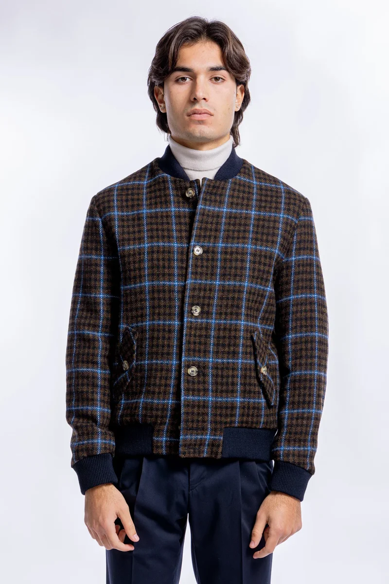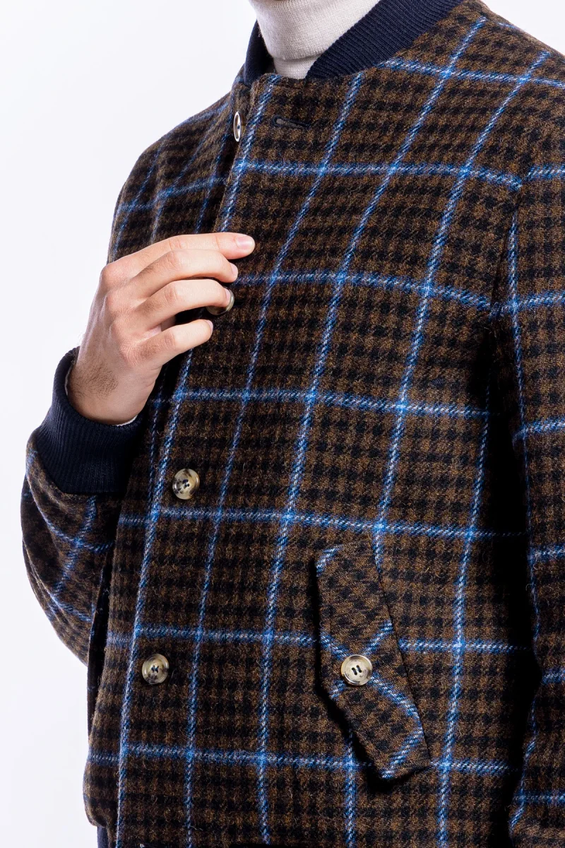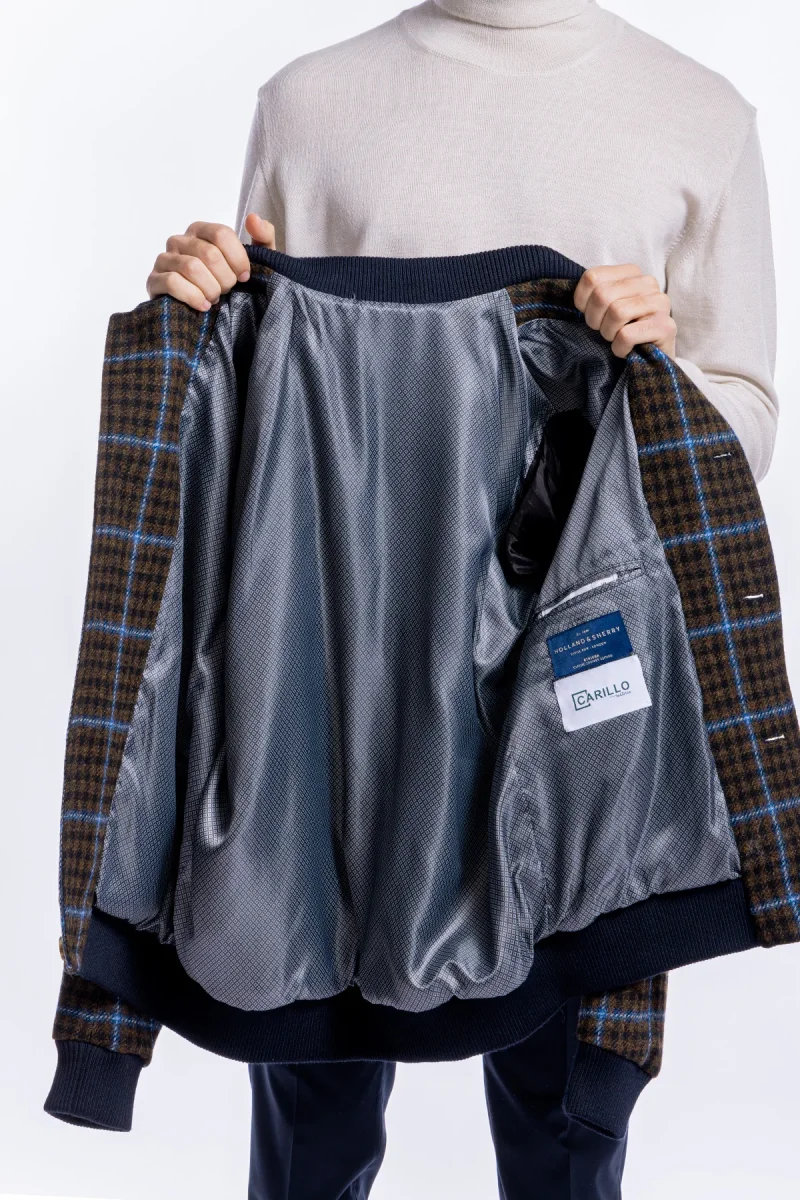 GIUBBOTTO DA UOMO MARRONE FANTASIA GALLES IN PURA LANA AL 100% HOLLAND & SHERRY SLIM FIT
