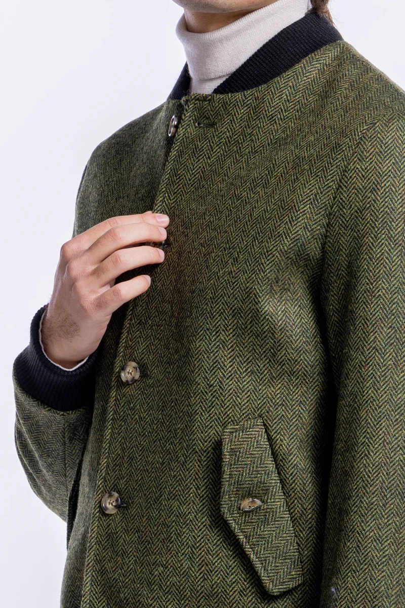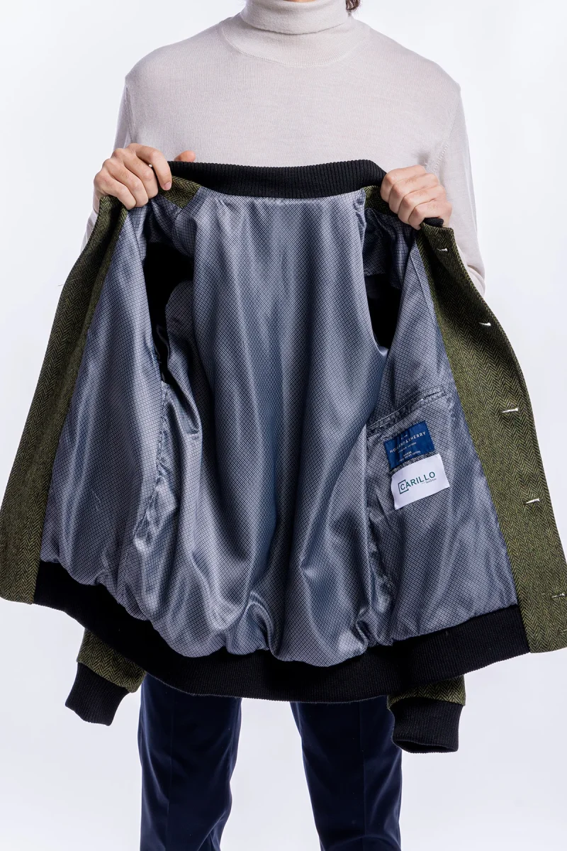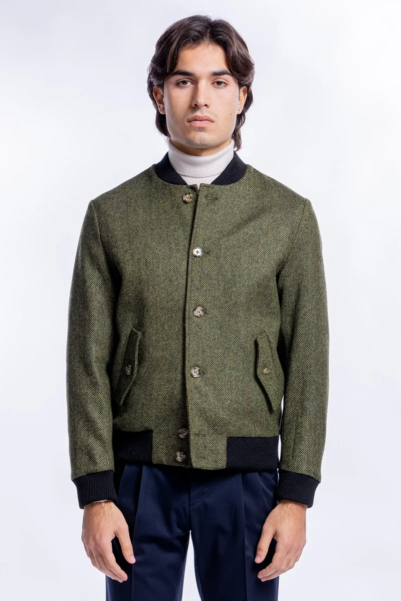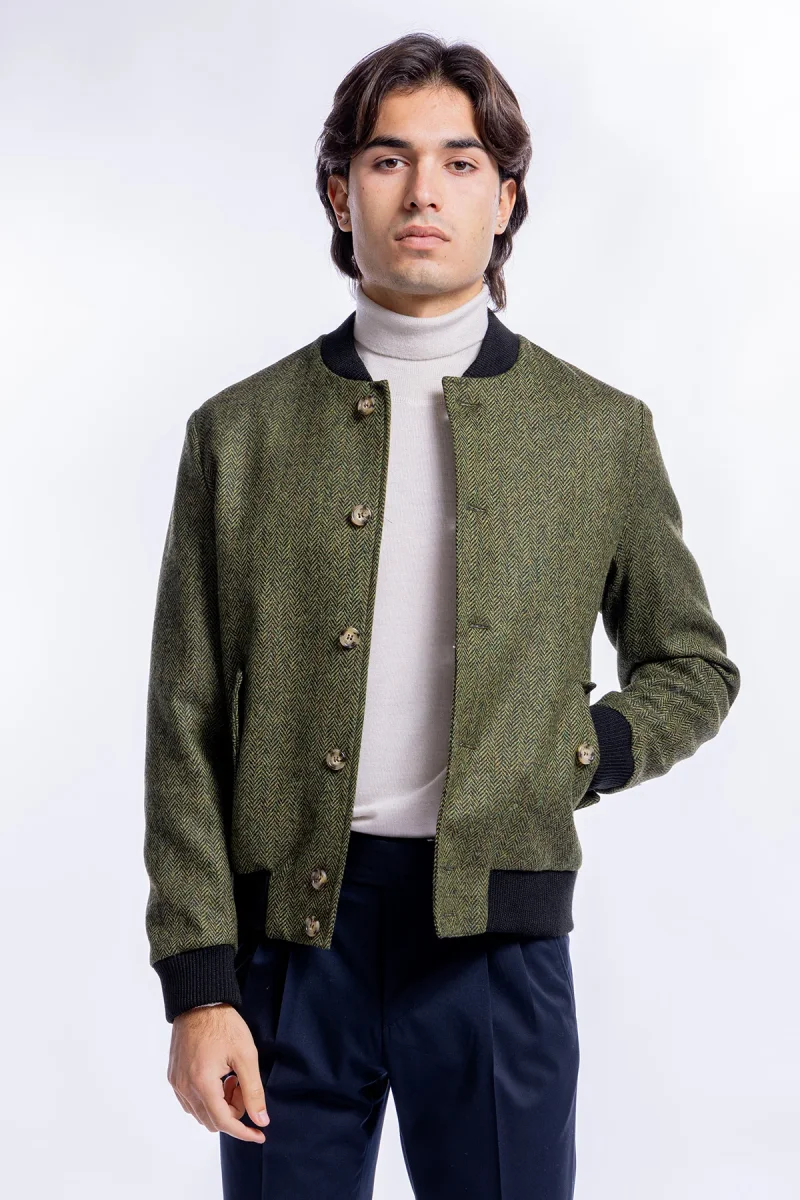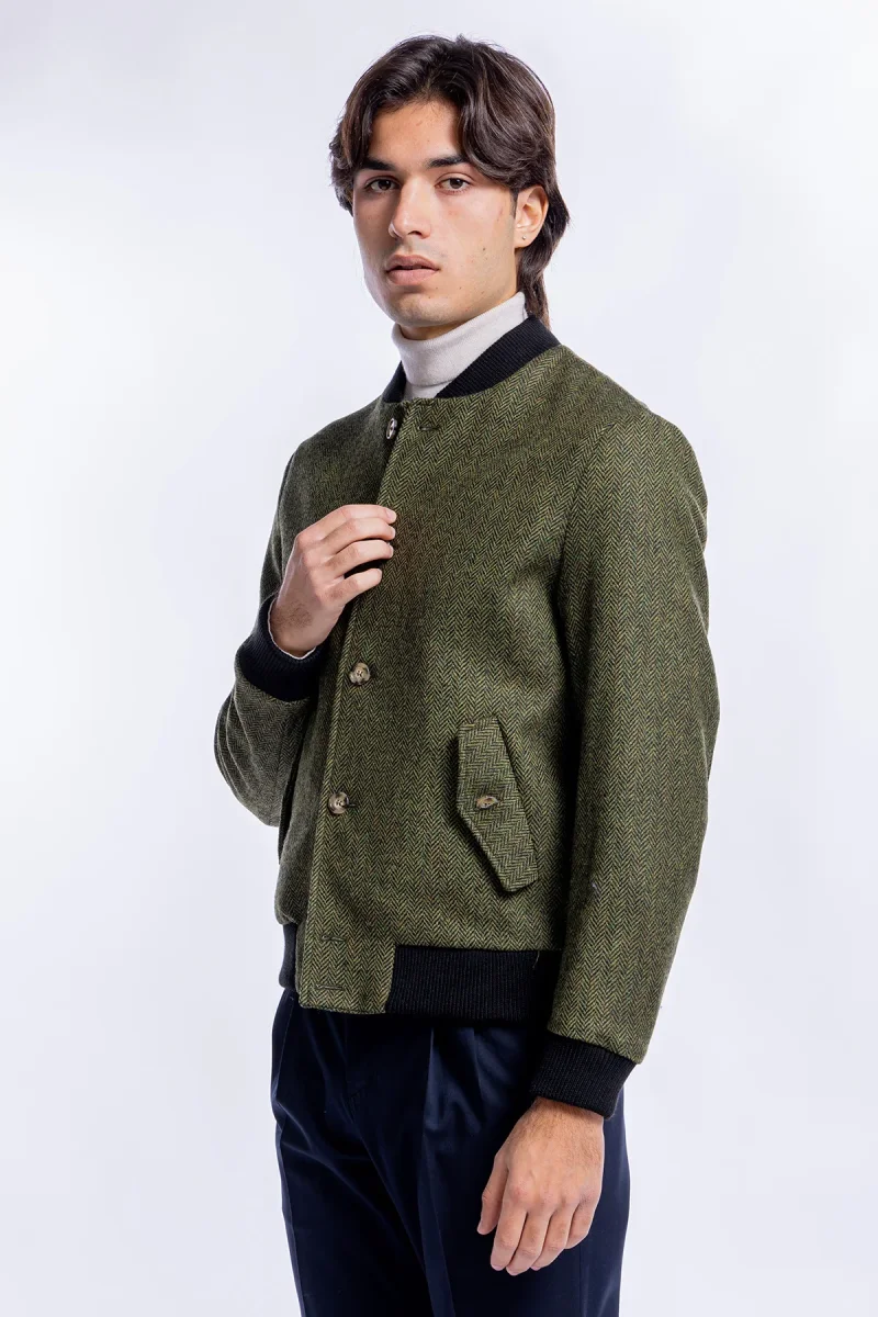 GIUBBOTTO DA UOMO VERDE FANTASIA SPIGATA IN PURA LANA AL 100% HOLLAND & SHERRY SLIM FIT