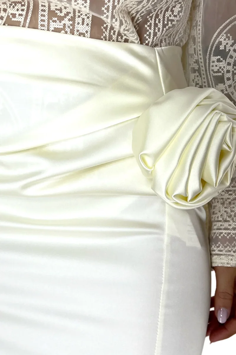 Gonna donna mini in satin vita alta con dettaglio fiore