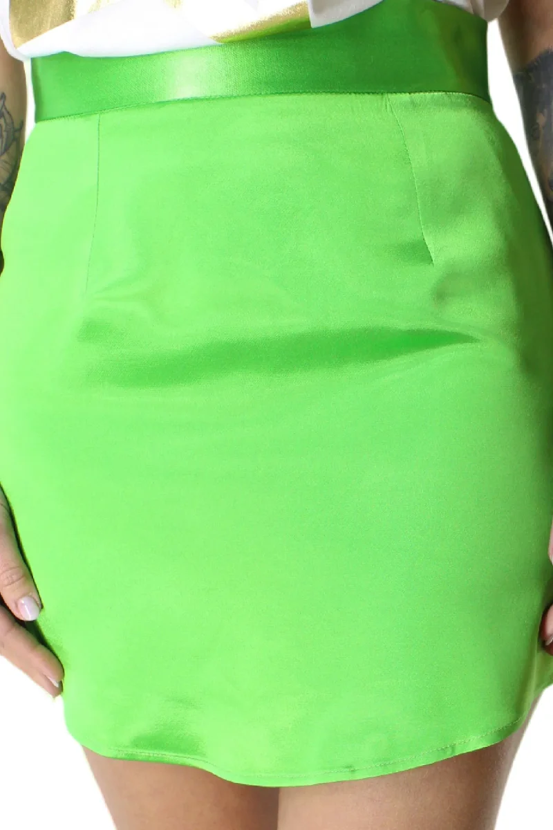 Gonna donna mini vita regolare in effetto raso lucido bustino alto chiusura cerniera retro