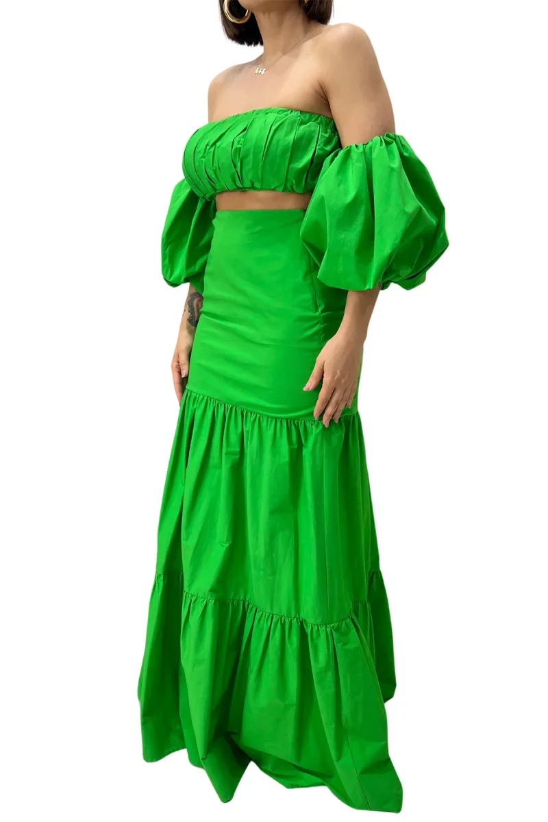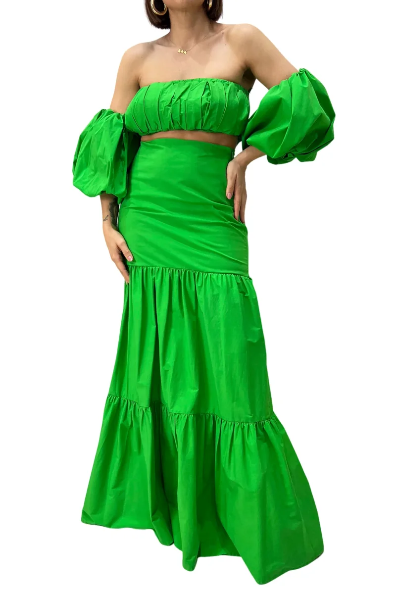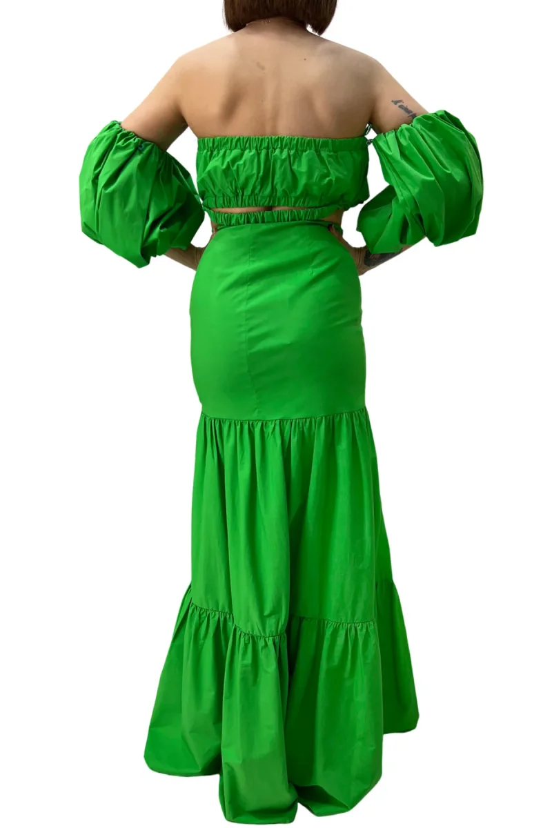 Gonna donna vita alta in cotone lunga con balze zip a scomparsa a lato