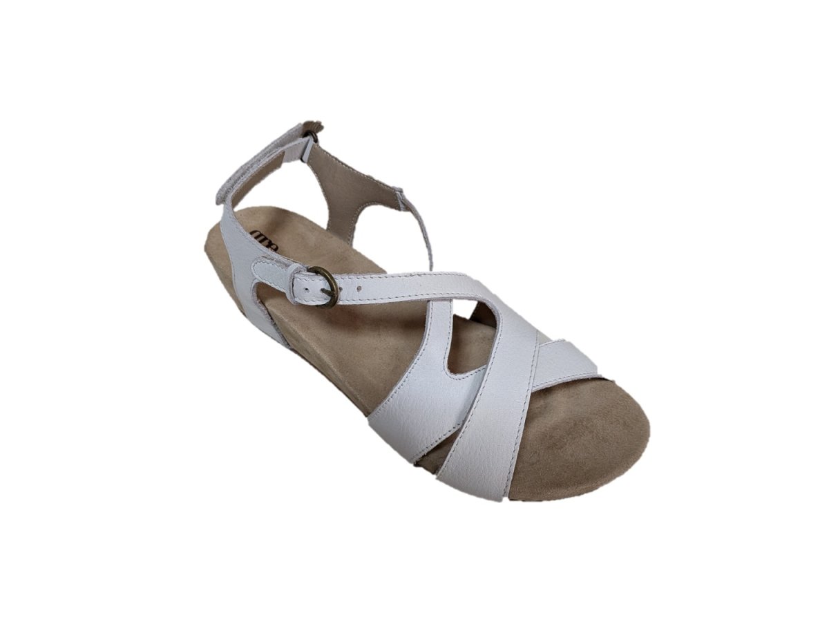 Sandali in pelle colore bianco, suola in gomma, zeppa di 4,5cm