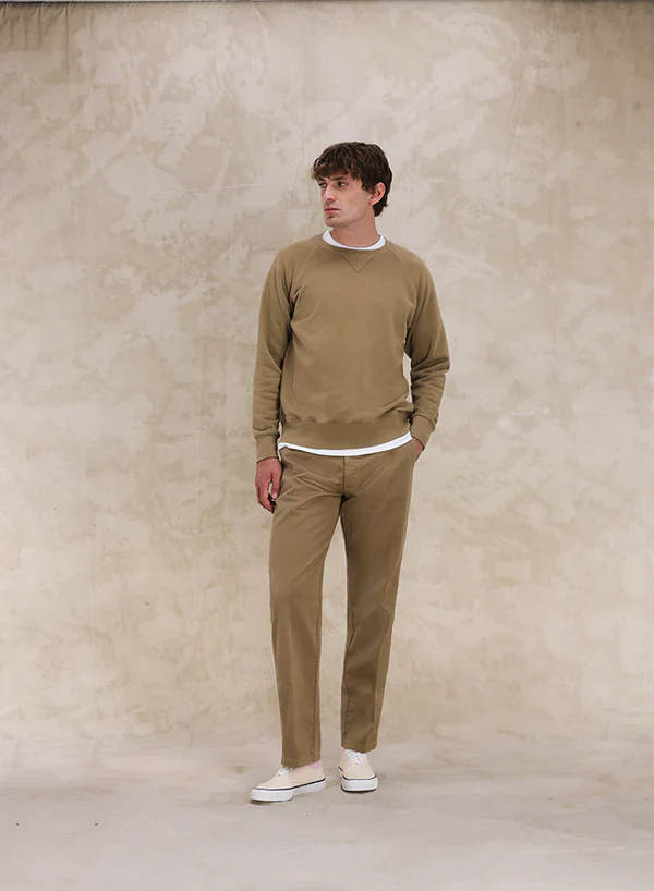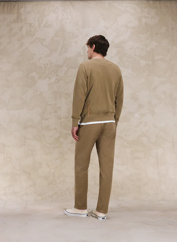 Sul retro, l’iconica impuntura Fortela, realizzata con filo arancione, incarna la filosofia del brand: ogni capo è progettato per durare e invecchiare insieme a chi lo indossa, portando con sé un pezzo di storia rivisitato alla luce dell’ispirazione e dello studio di Alessandro Squarzi