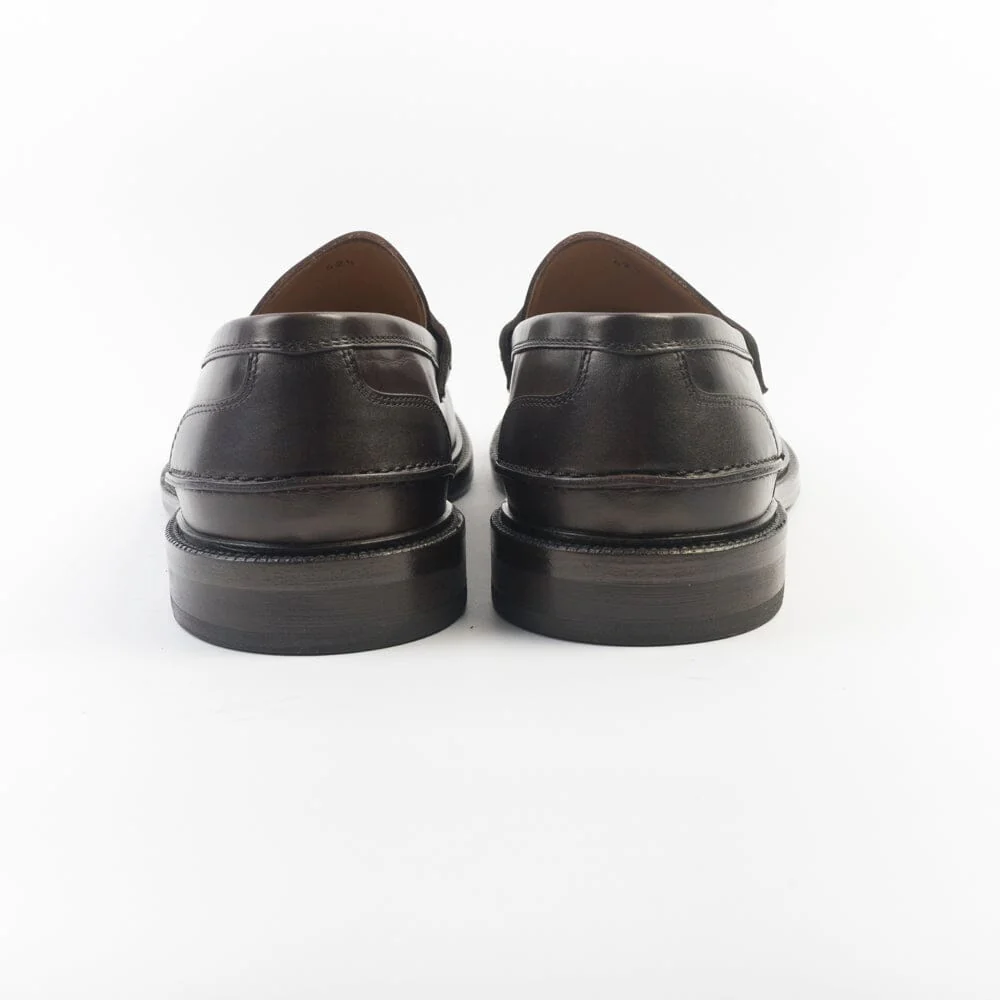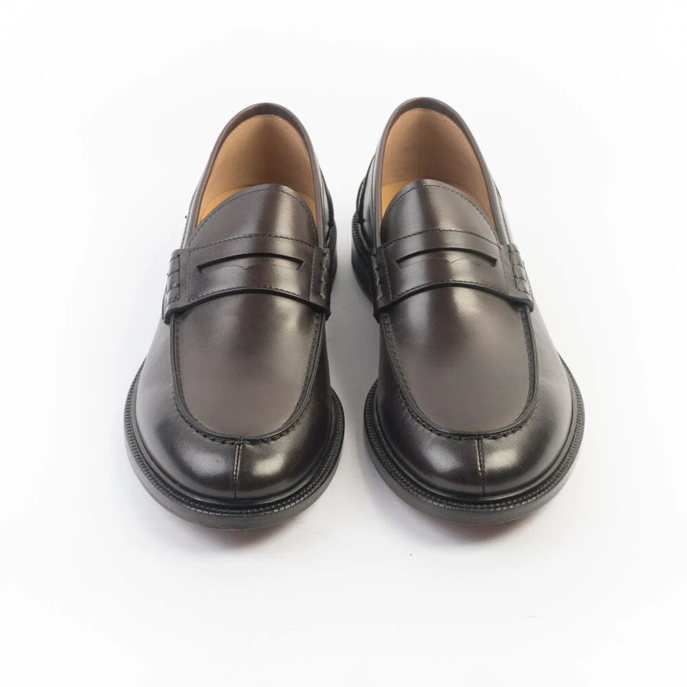 Classico mocassino con mascherina di Henderson, realizzato in pelle di vitello opaca di colore marrone, interno foderato. Suola in cuoio. Disponibile anche nella versione in pelle di colore nero.