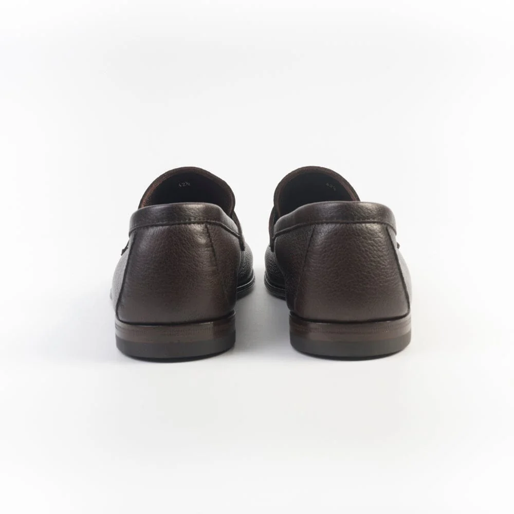 Mocassino con mascherina di Henderson, realizzato in morbidissima pelle di cervo di colore marrone, internamente sfoderato. Lavorazione a sacchetto, cucitura Blake. Suola in cuoio e gomma.