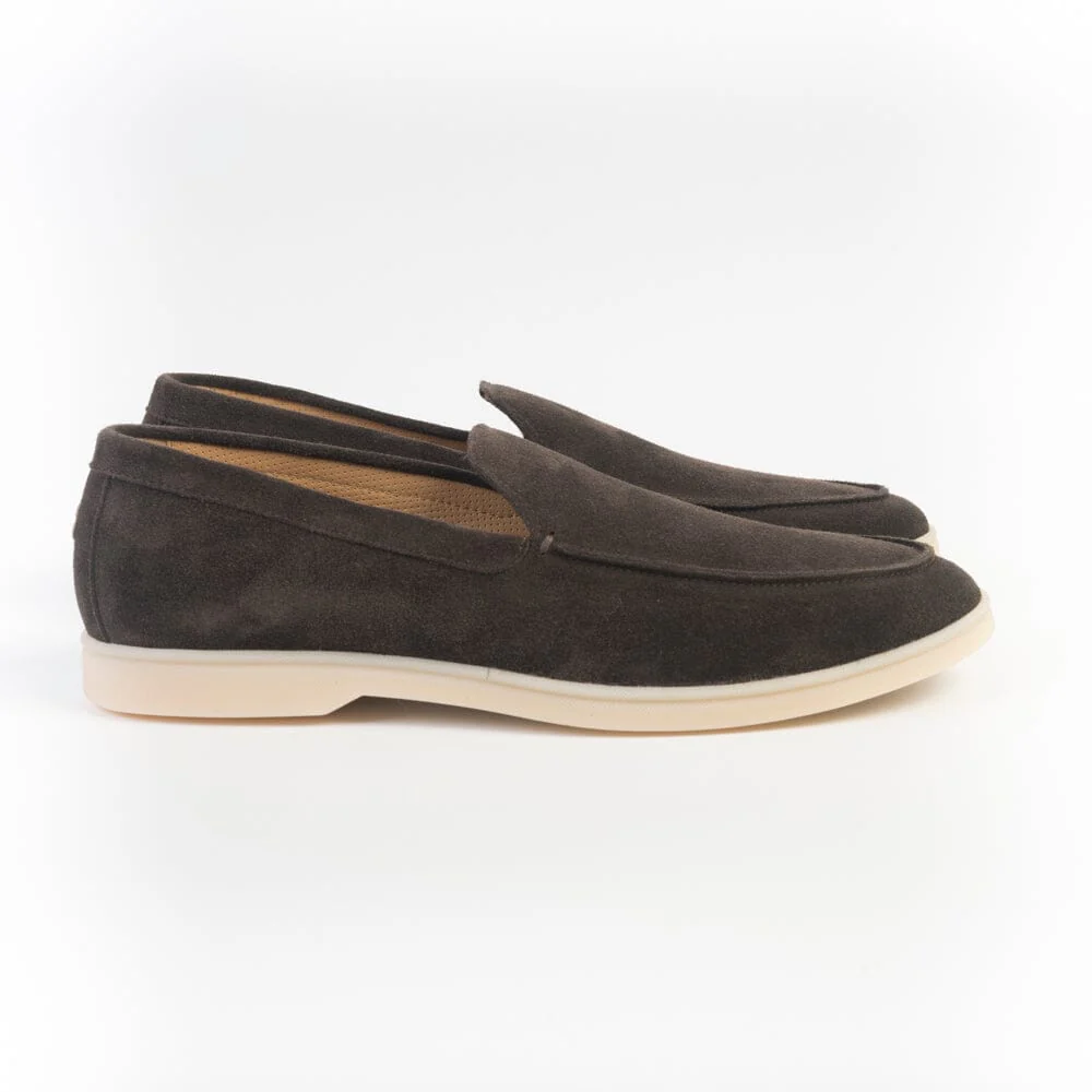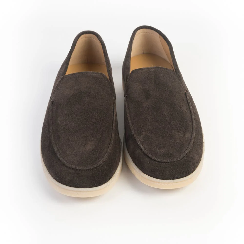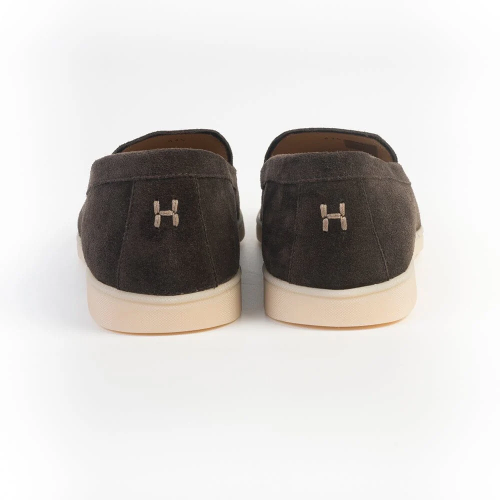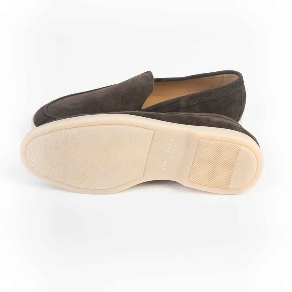 Slipon di Henderson, realizzata in morbido camoscio di colore testa di moro, interno foderato. Suola in lattice naturale. Soletta interna estraibile. Iniziale del brand cucito sul retro in rilievo a contrasto.