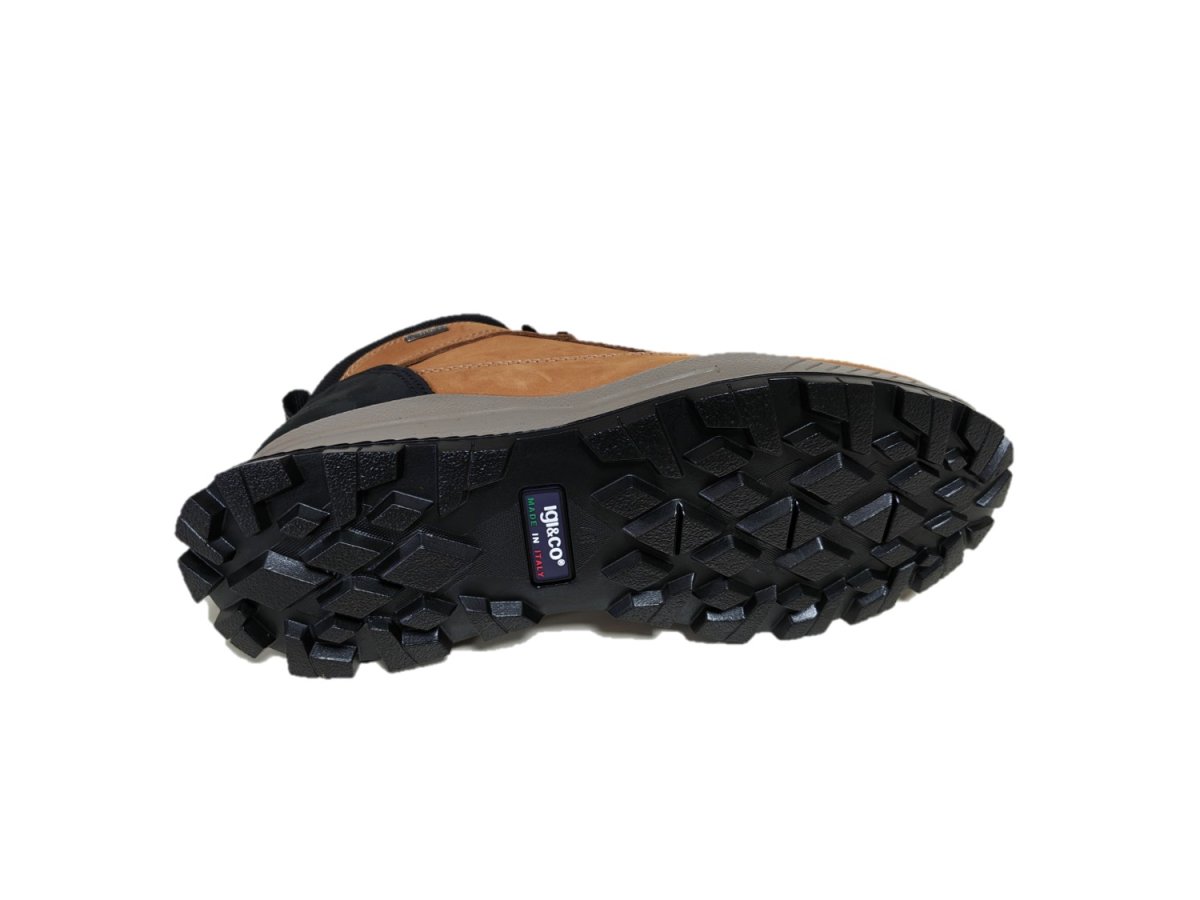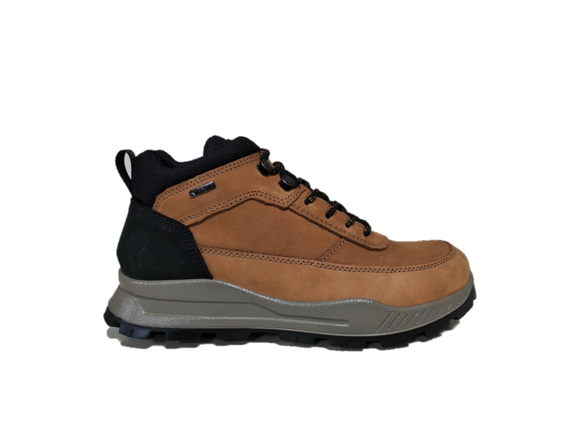 Scarponcini in plle nabuk colore cuoio, fodera calda e sistema gore-tex, suola in gomma