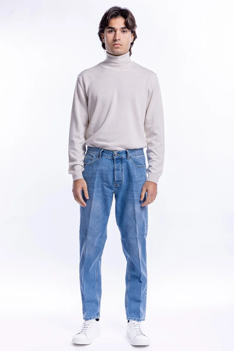 Jeans chiaro uomo sabbiato 5 tasche con lievi sabbiature vestibilità regular