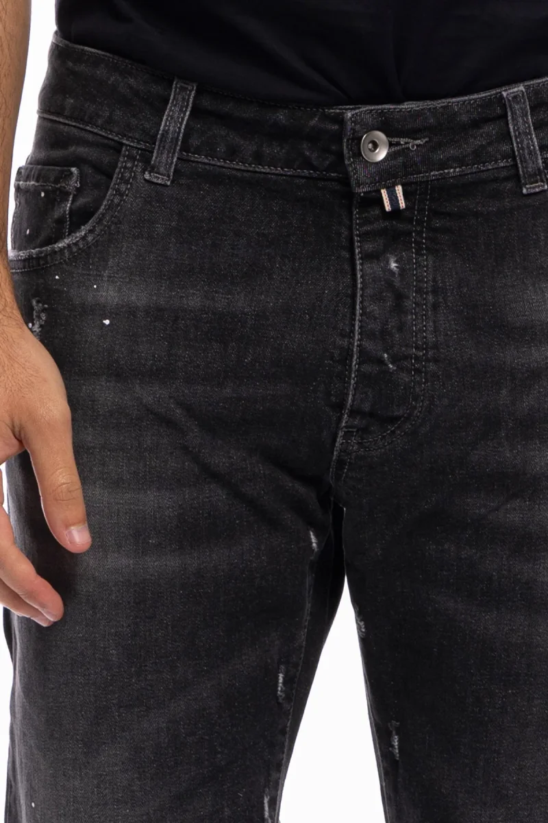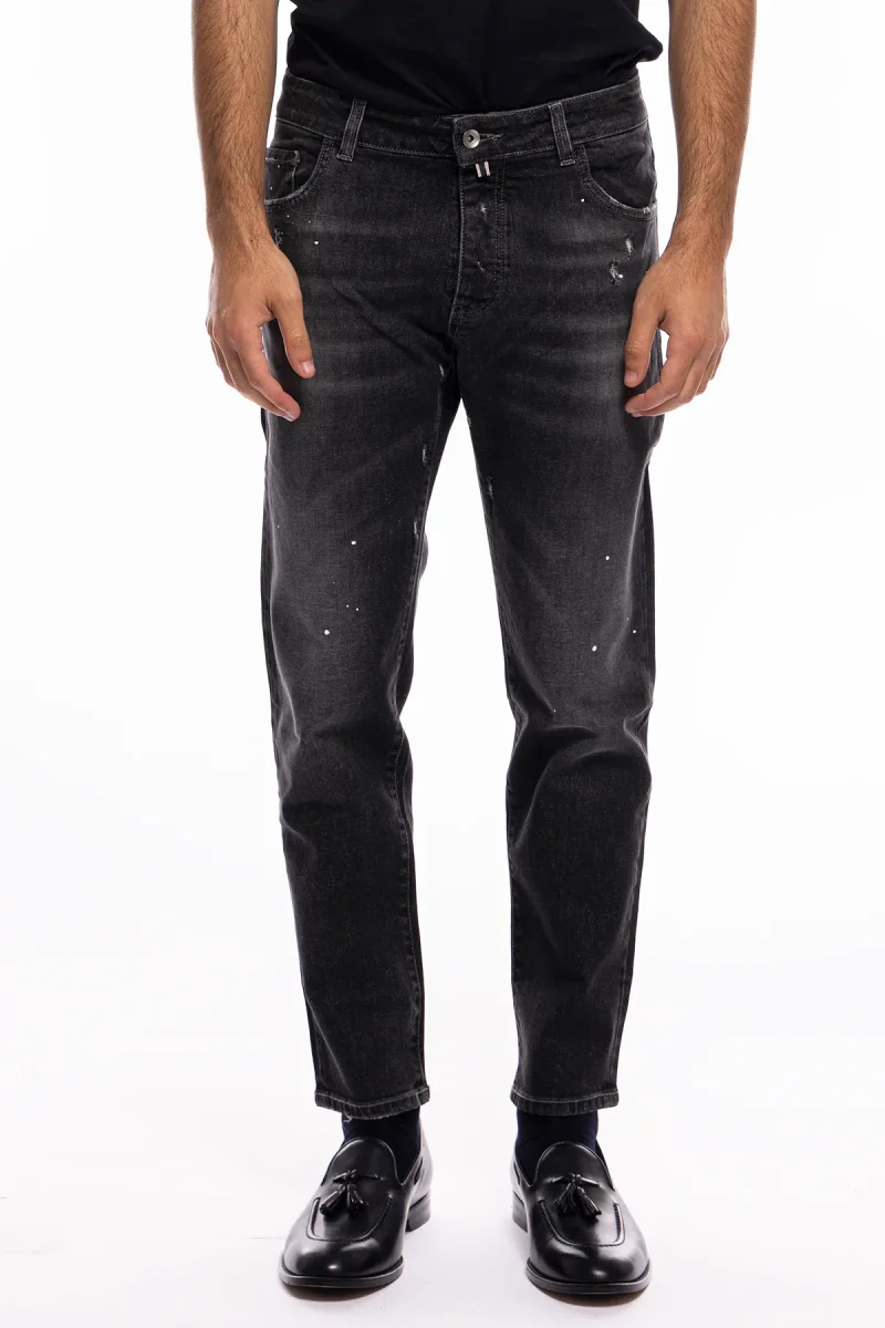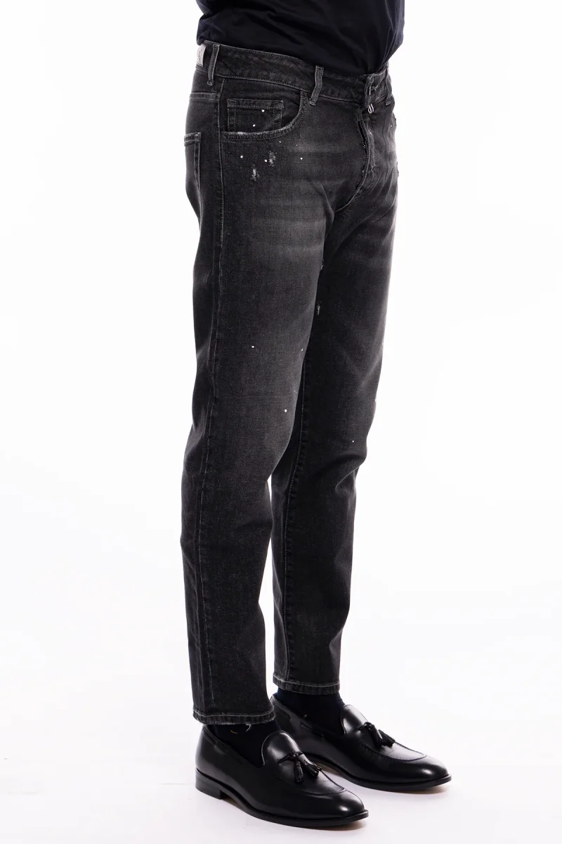 Il Jeans da uomo grigio scuro con leggere sabbiature bianche e schizzi di pittura e ormai per i nostri clienti sinonimo di garanzia e qualita.Questo modello, viene scelto da una tipologia di persone che amano vestire benee nello stesso tempo scelgono la comodita. Infatti grazie alle caratteristiche del tessuto morbido e leggermente elastico a chi lo indossa di scegliere la sua misuraperfetta e non preoccuparsi delle limitazioni dei movimenti nonostante la sua vestibilita slim.