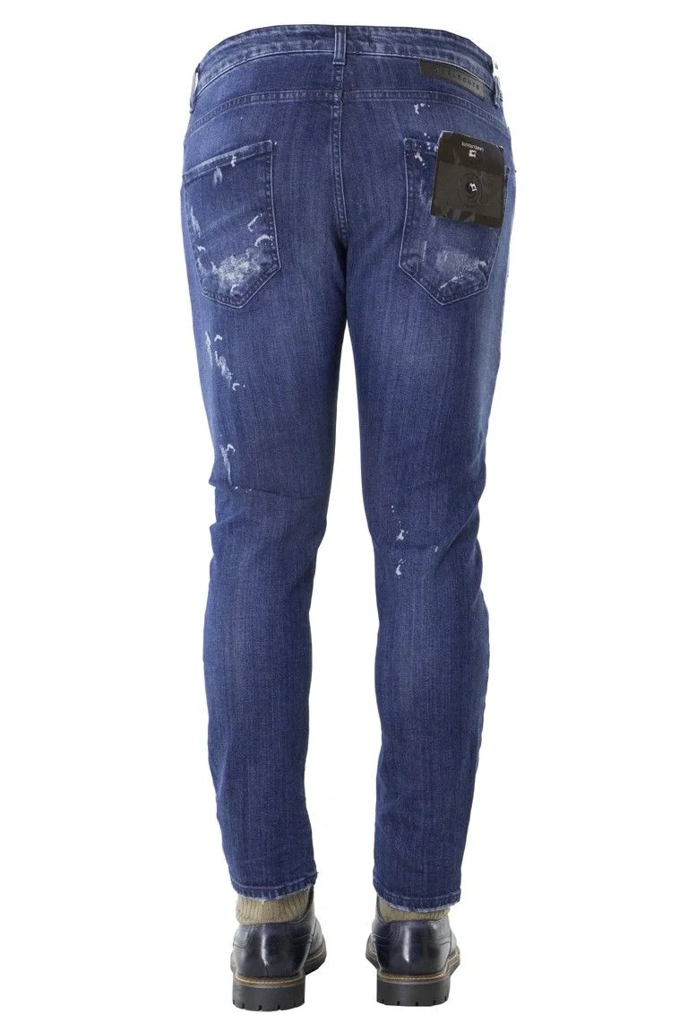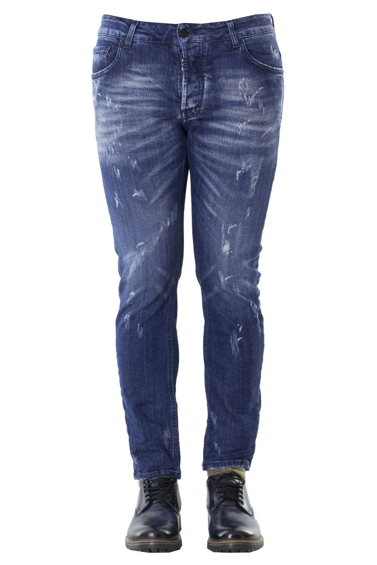 Jeans da uomo in cotone elastico vestibilita slim fit modello 5 tasche lavaggio scuro con rotture