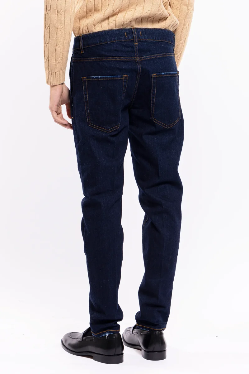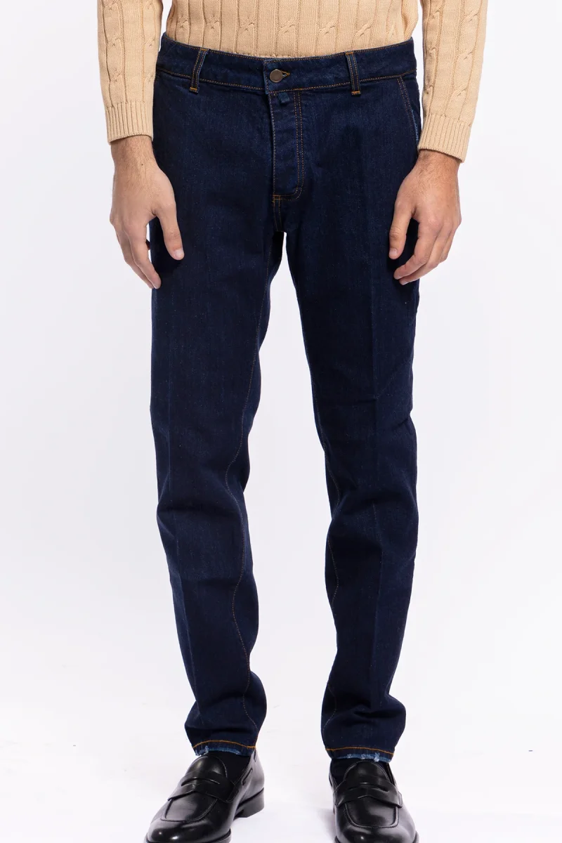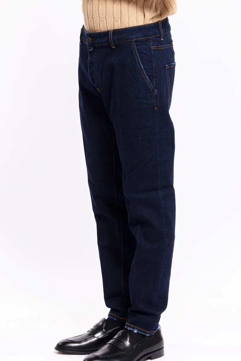 Jeans da uomo lavaggio zero tasca america con lievi rotture vestibilità slim cuciture in contrasto leggermente elasticizzato