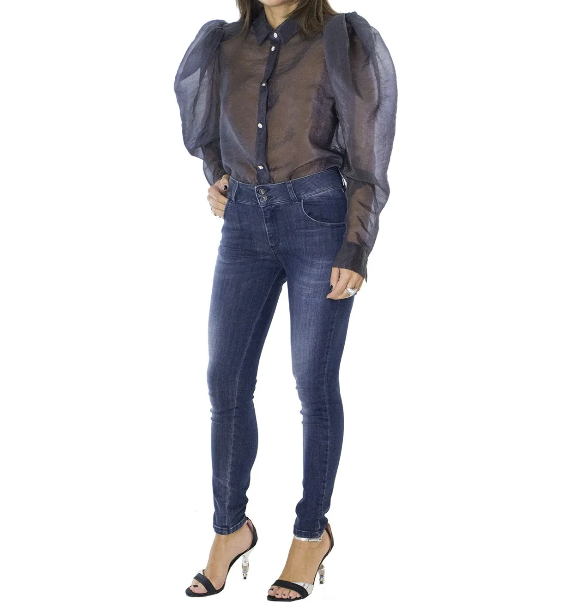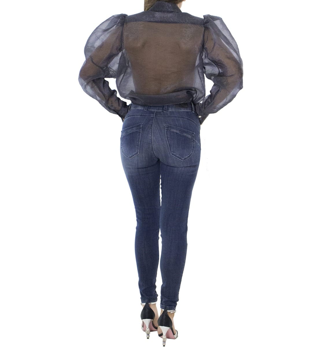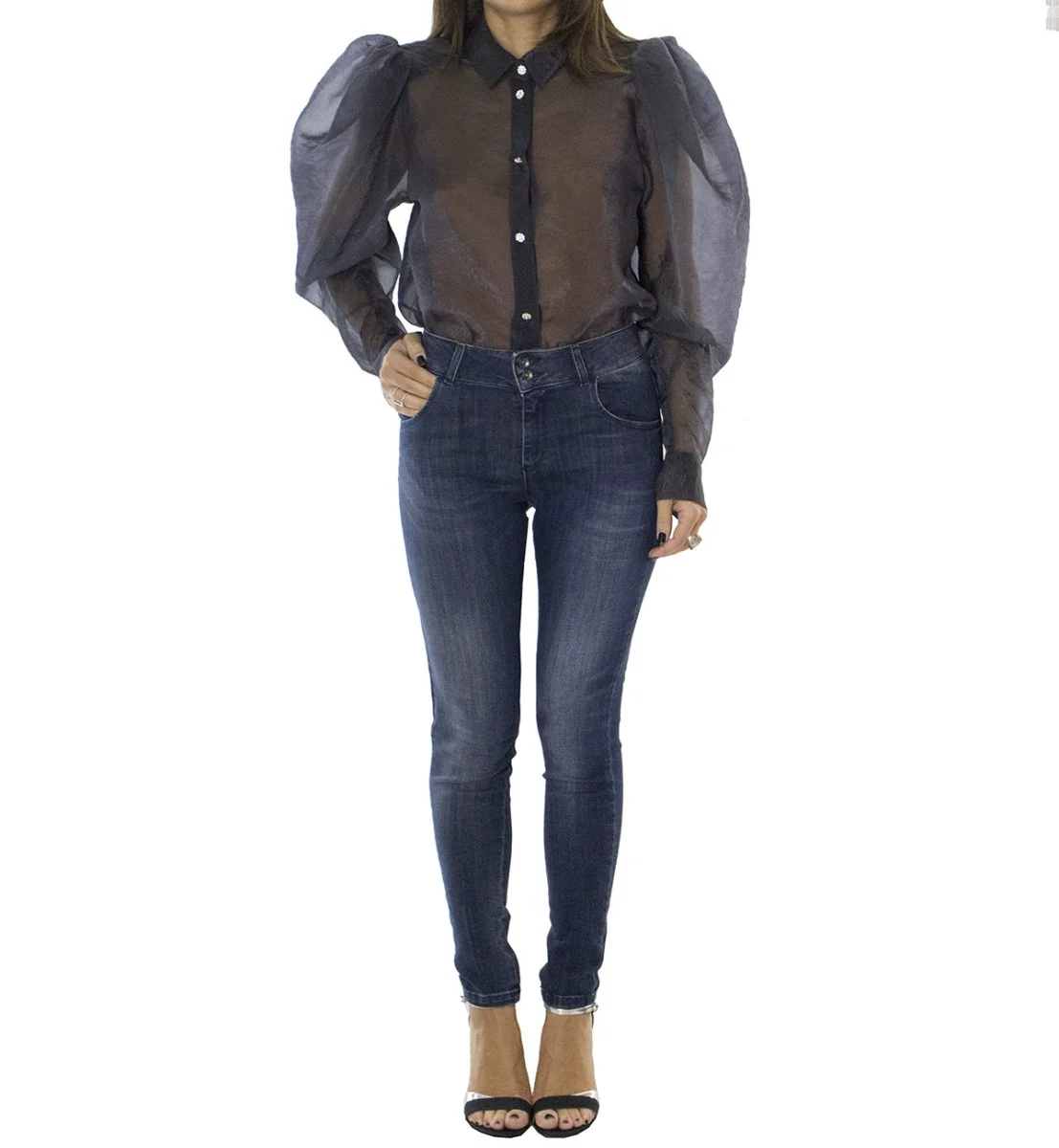 Jeans donna skinny elasticizzato lavaggio 0 modello 5 tasche effetto push up chiusura doppio bottoncino