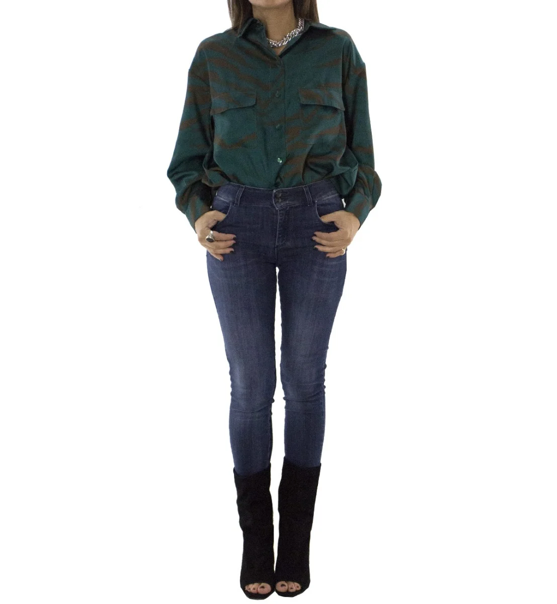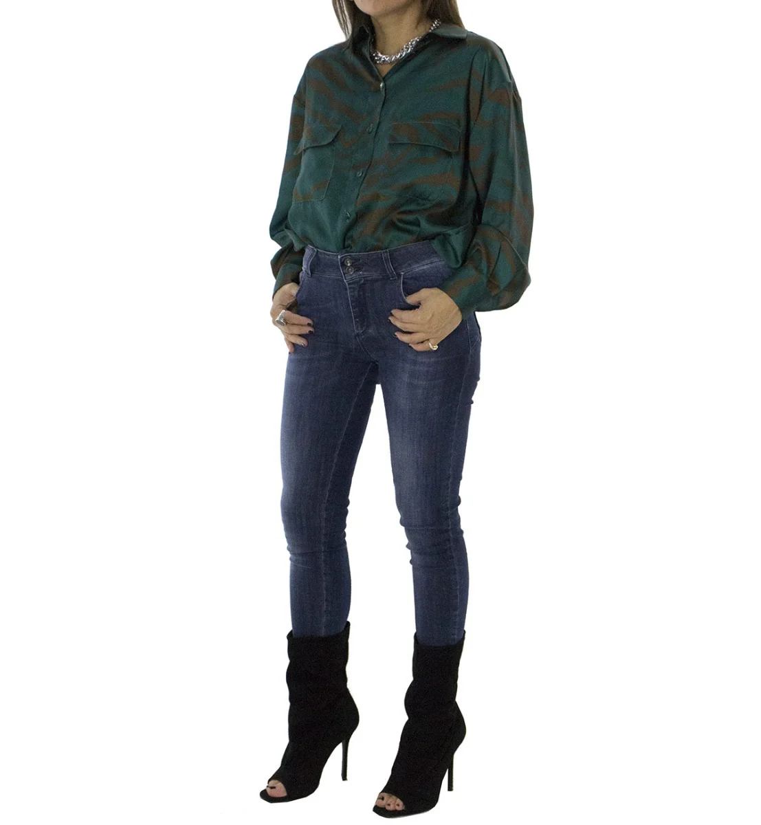 Jeans donna skinny elasticizzato lavaggio 0 modello 5 tasche effetto push up chiusura doppio bottoncino