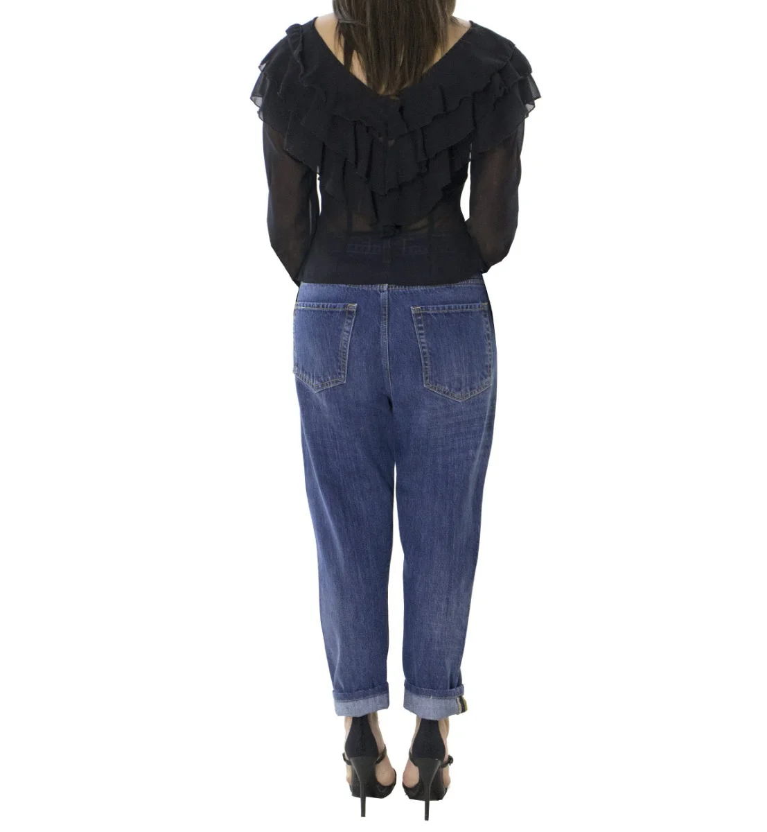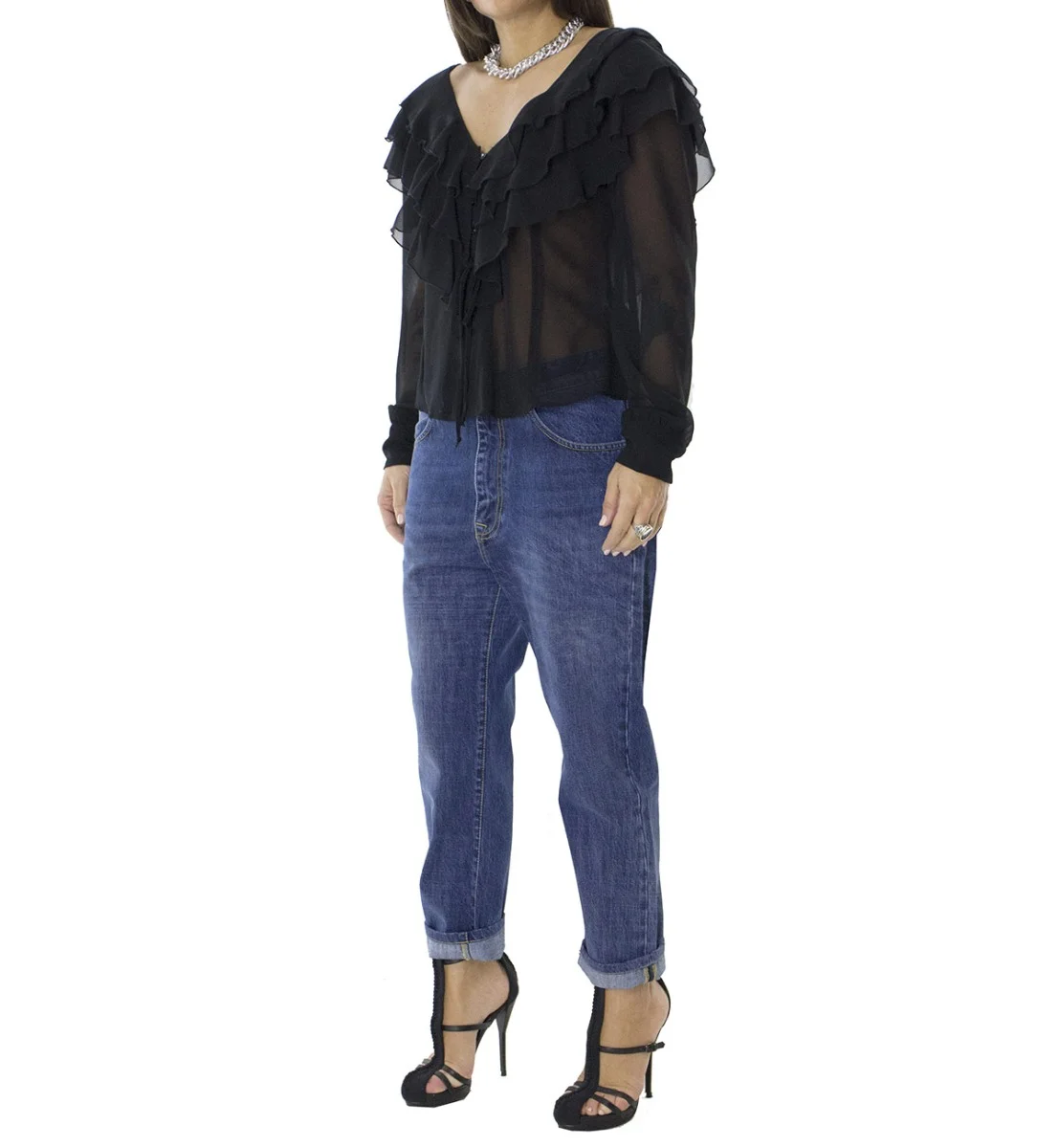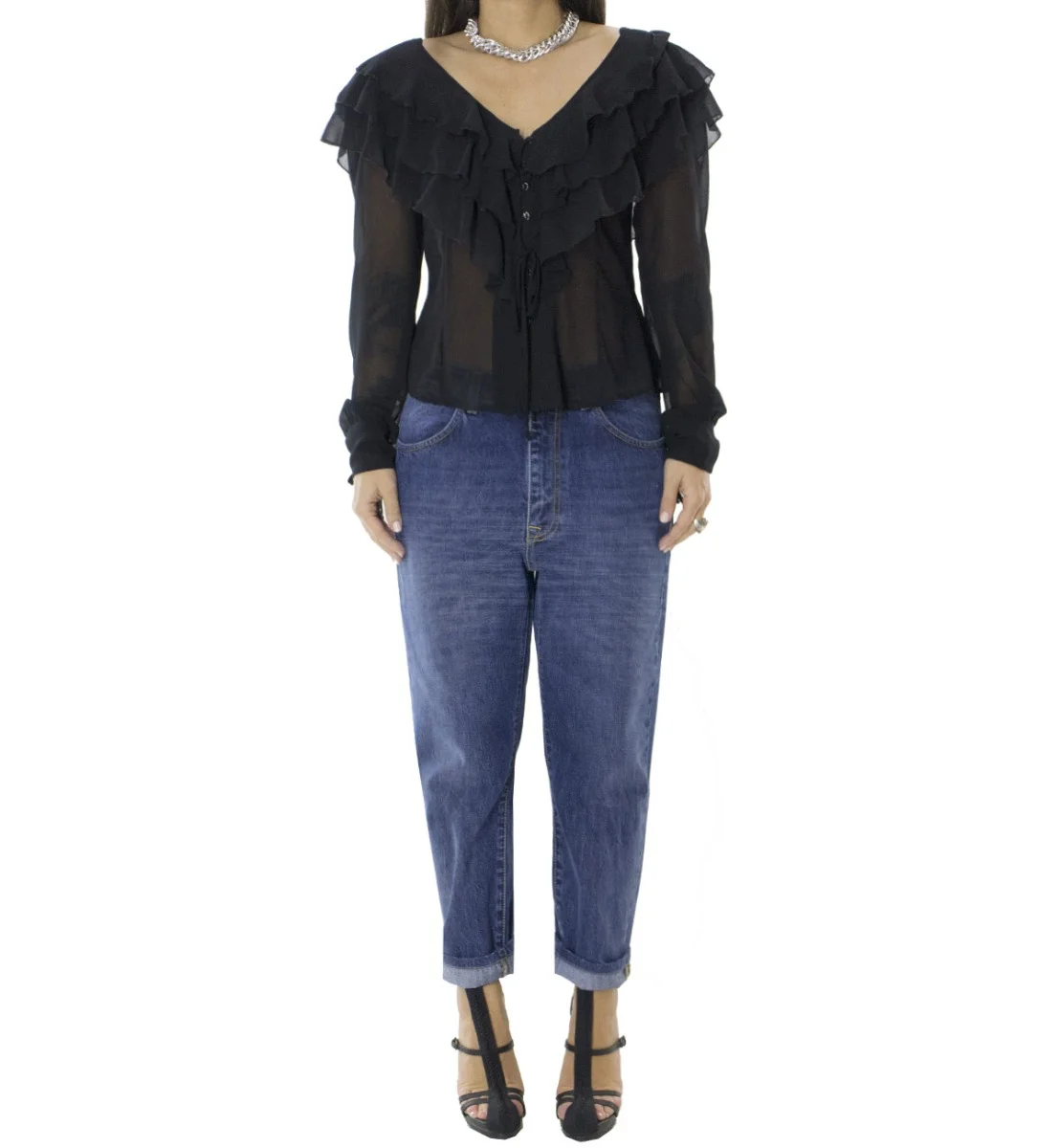 Jeans donna tessuto fisso lavaggio 2 sabbiato modello baggy 5 tasche vestibilita ridotta
