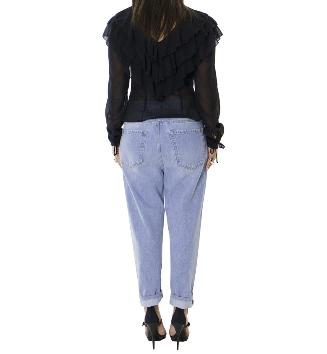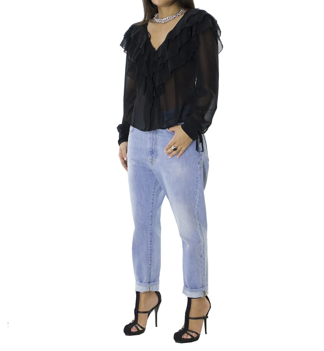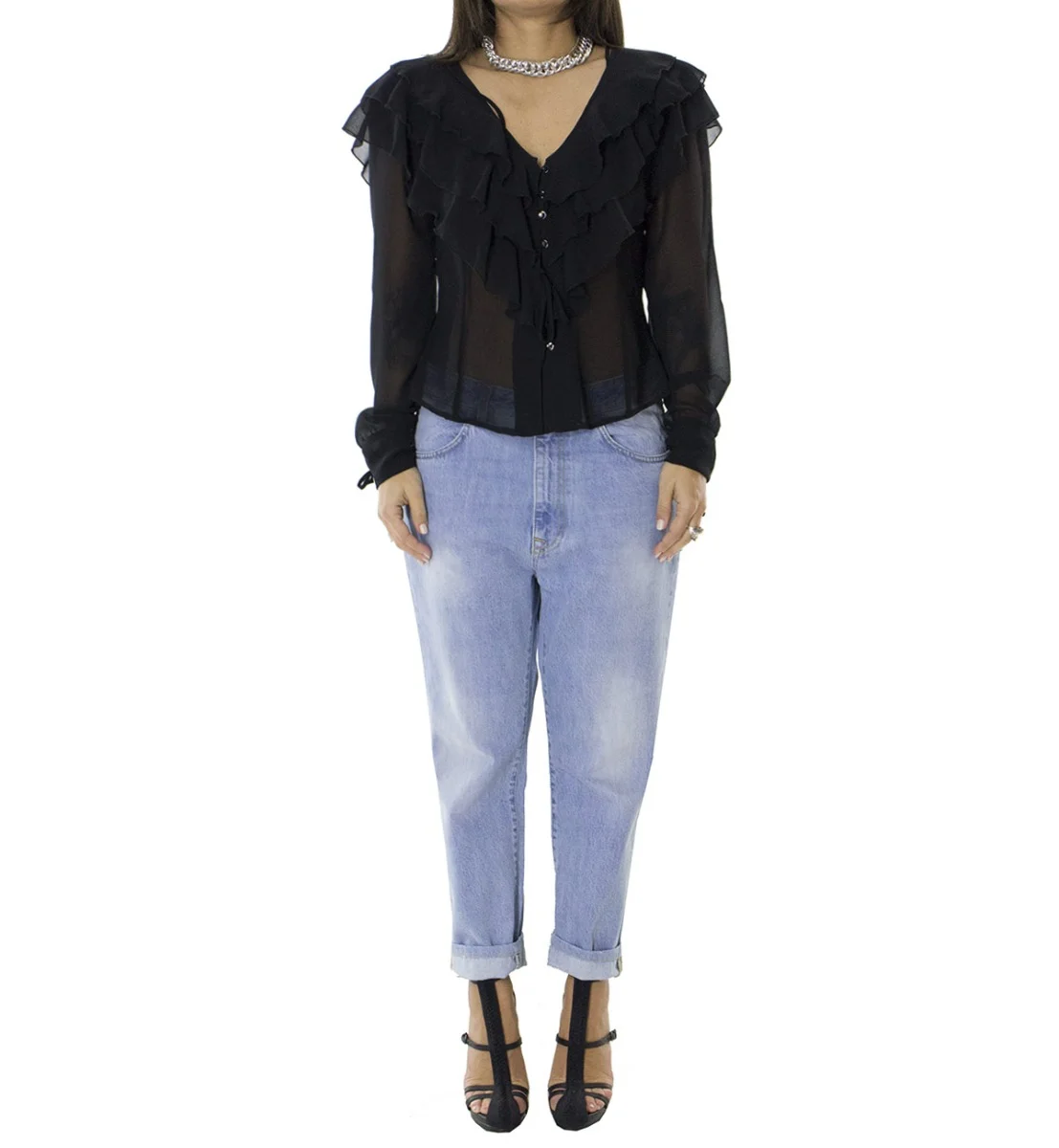Jeans donna tessuto fisso lavaggio 3 sabbiato chiaro modello baggy 5 tasche vestibilita ridotta