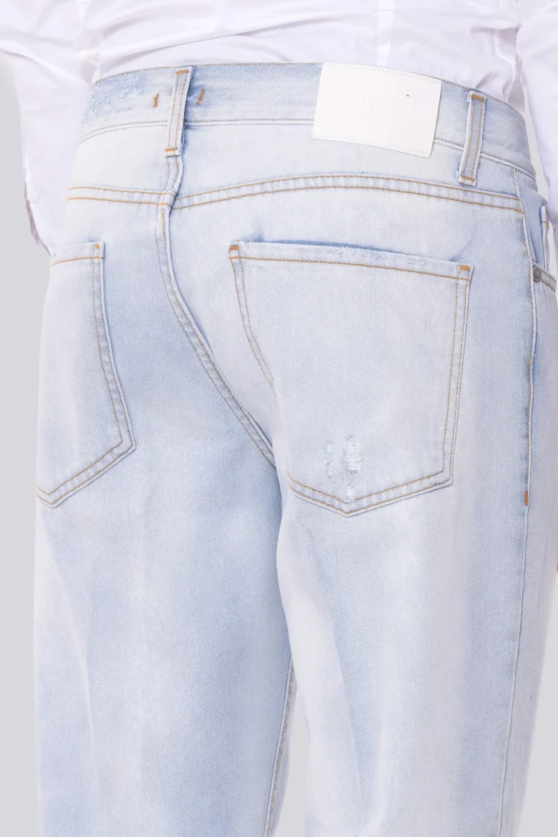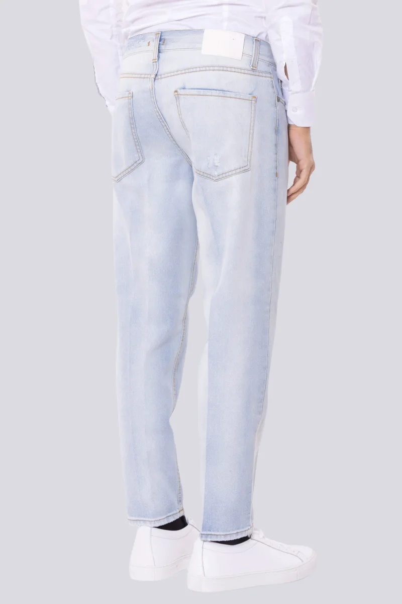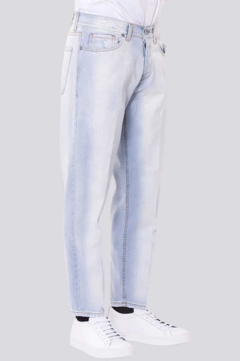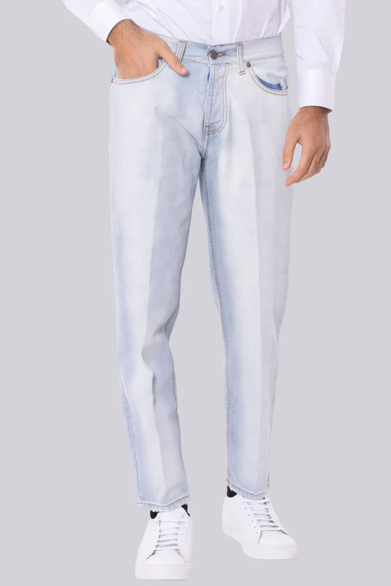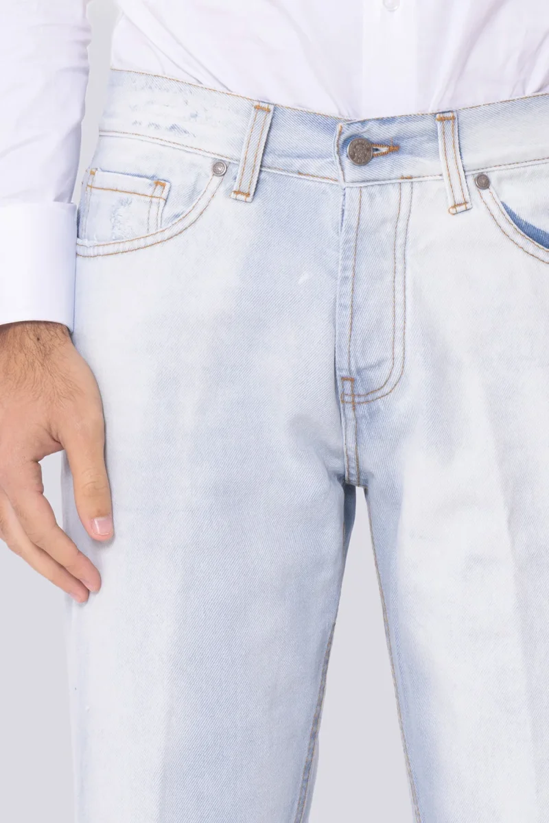 Jeans marmorizzato lavaggio chiaro da uomo modello 5 tasche con lievi sabbiature vestibilità regular