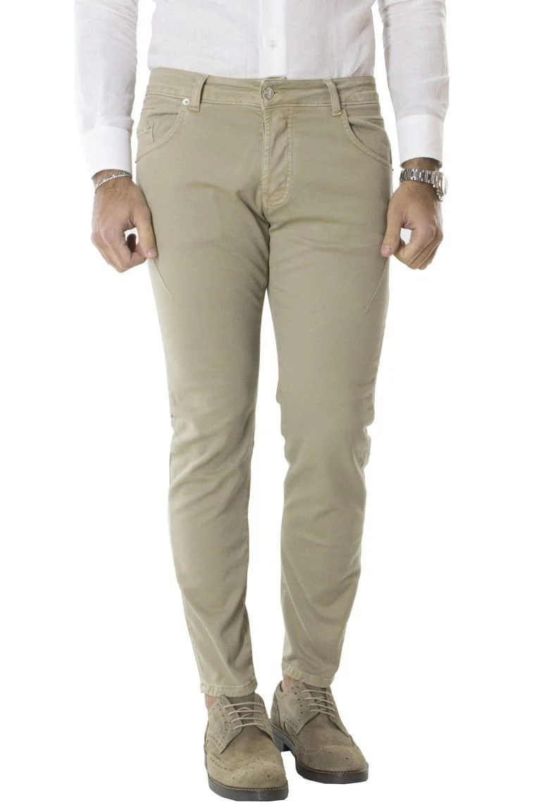 Jeans uomo skinny estivo casual leggermente elastico modello freeman 5 tasche con tagli sotto le tasche chiusura con bottone vestibilita slim fit made in italy