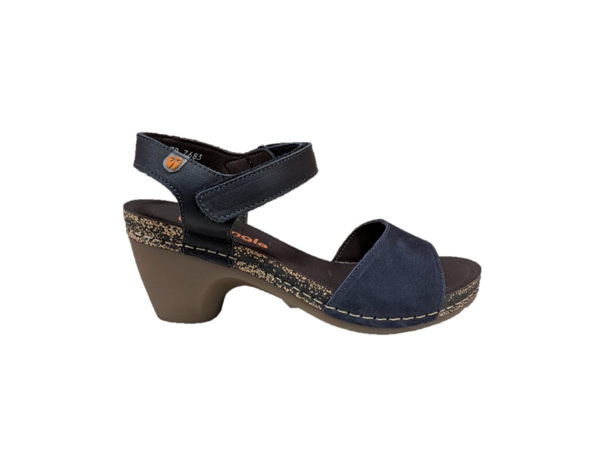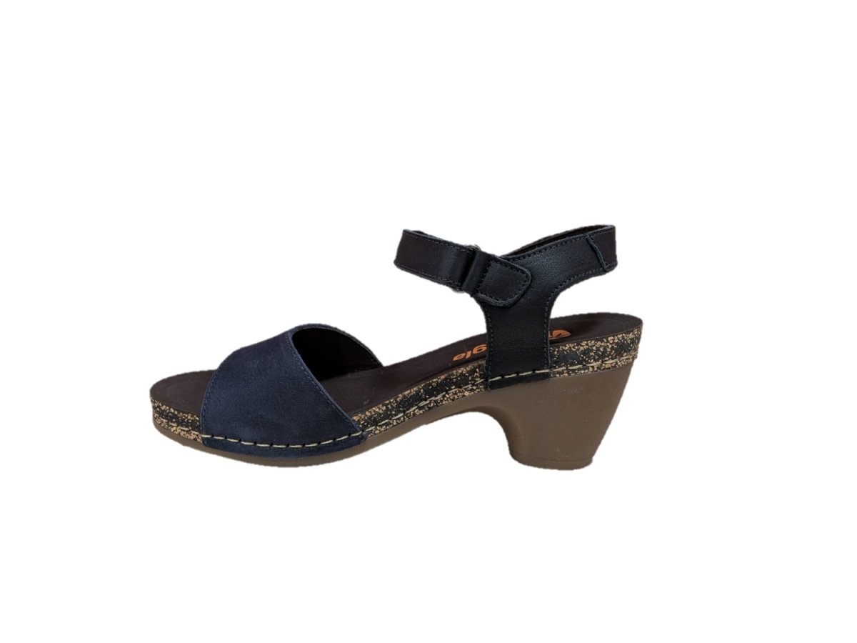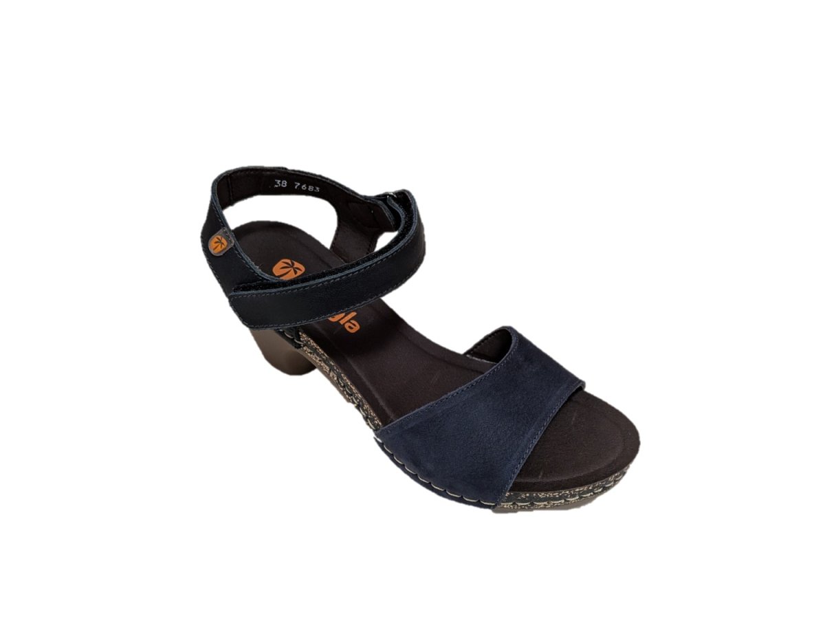 sandali in pelle nabuk, tacco 5,5cm, suola in gomma, allacciatura con velcro.