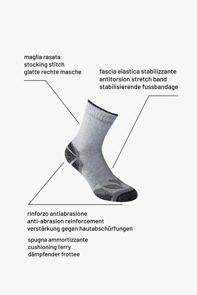 Rinforzate e ammortizzanti, sono dedicate all’escursionismo estivo, alle camminate sui sentieri e nei boschi. Massimo benessere grazie alla dermoaffinità della fibra naturale.