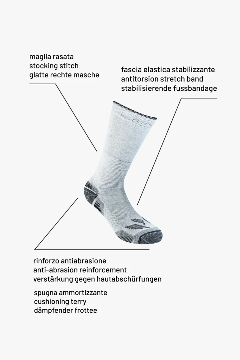 Rinforzate e ammortizzanti, sono dedicate all’escursionismo estivo, alle camminate sui sentieri e nei boschi. Massimo benessere grazie alla dermoaffinità della fibra naturale.