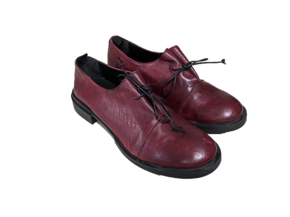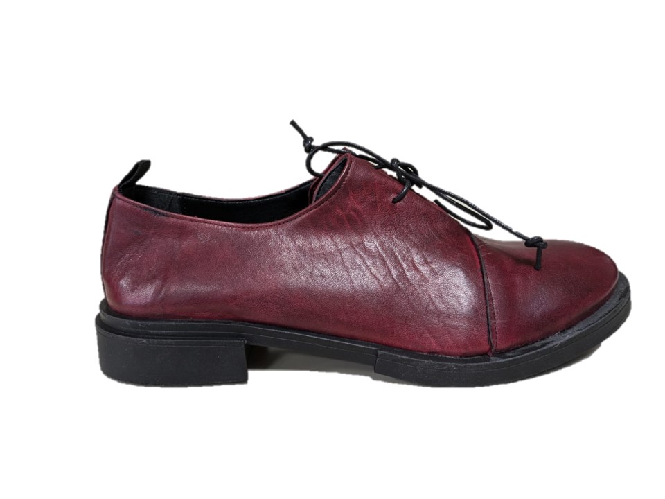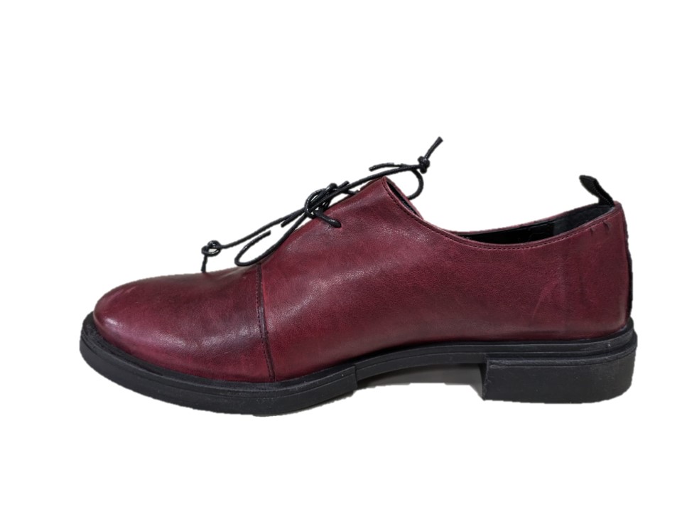 scarpa bassa in pelle colore bordeaux, suola in gomma, made in Italy, tacco 3cm