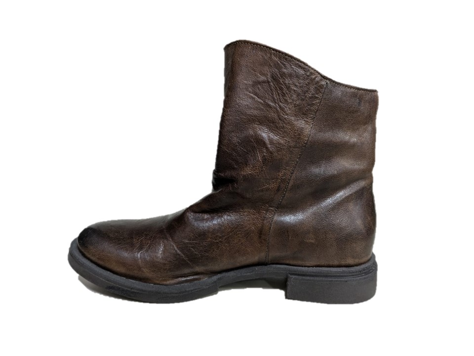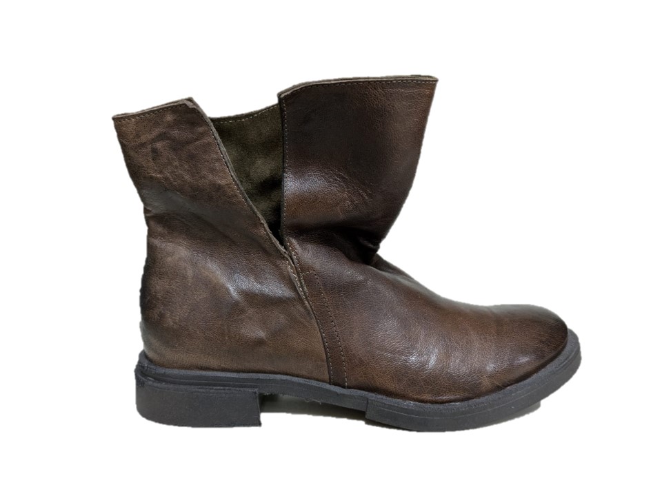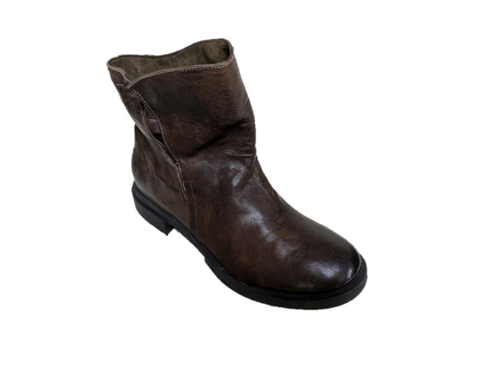 stivaletti in pelle colore fango, tacco 3cm, suola in gomma, made in Italy