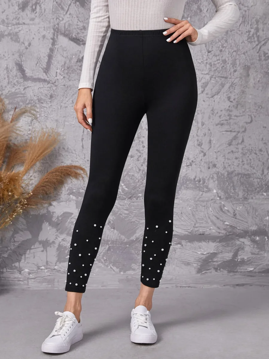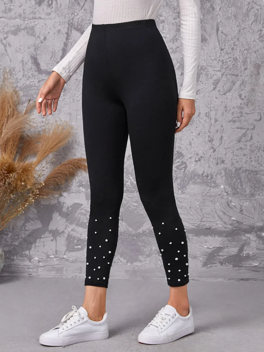 Leggings in vita alta a perline