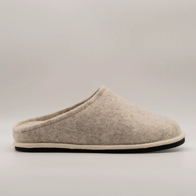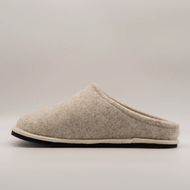 Il plantare in lattice è estraibile, permettendo una facile sostituzione o una gestione personalizzata del comfort. La suola in lattice naturale, lavorata a mano e accoppiata al feltro di lana, è ipoallergenica, traspirante, isolante e resistente, ideale per l’uso domestico. Inoltre, garantisce una camminata silenziosa, si adatta in modo flessibile ai movimenti e non macchia i pavimenti.