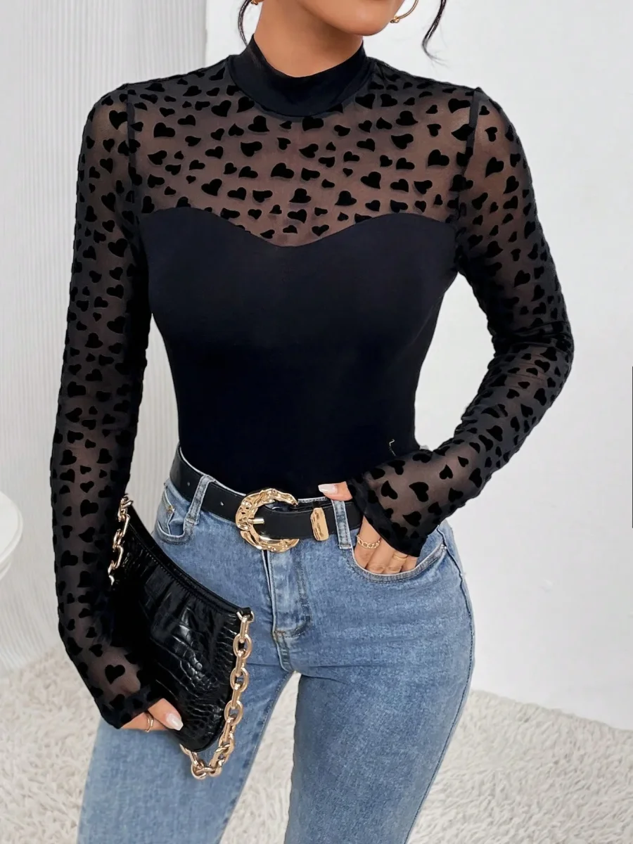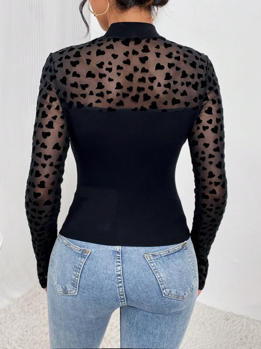 Recensisci per primo “Maglietta contrasto cuore mesh collo dritto”