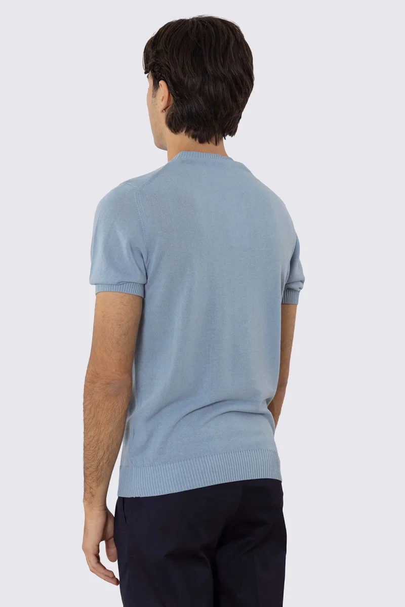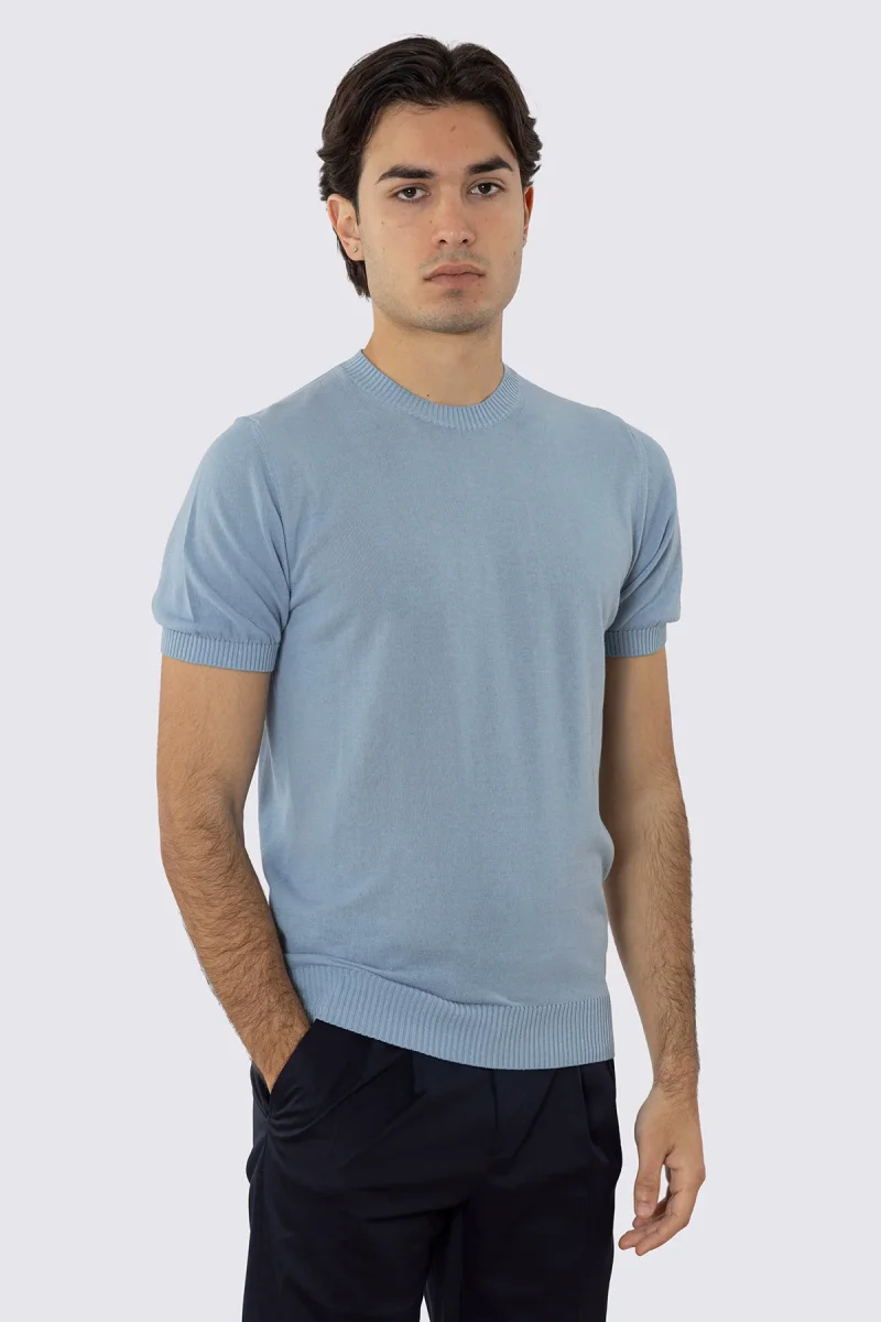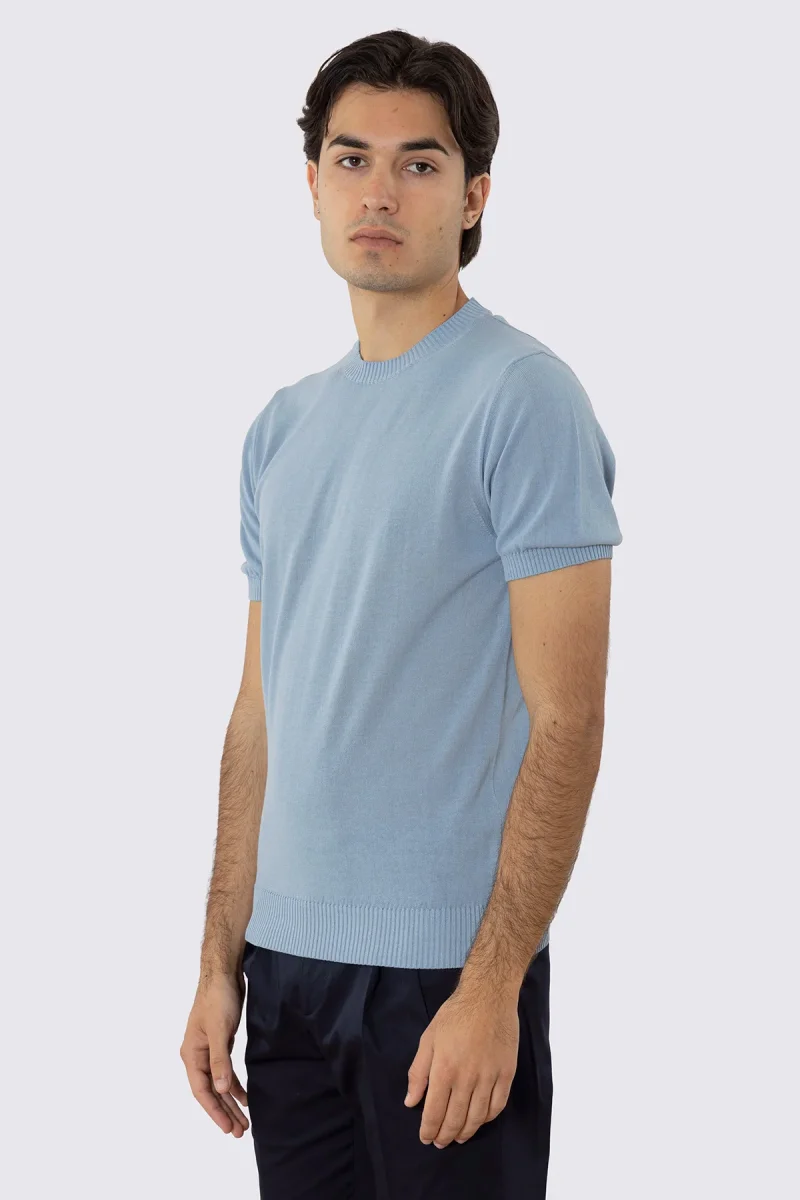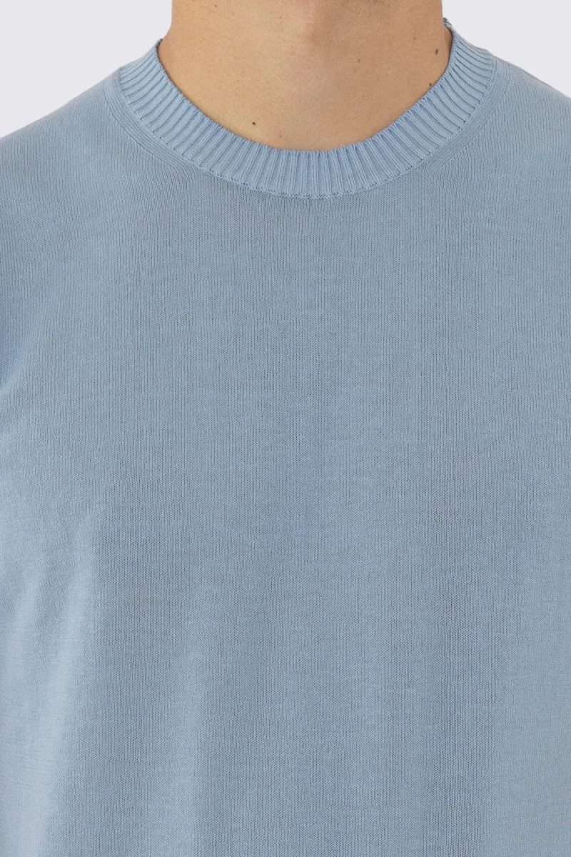 Maglioncino celeste mezze maniche in cotone 100% di filo tinta unita con elastici sulle maniche e sul fondo