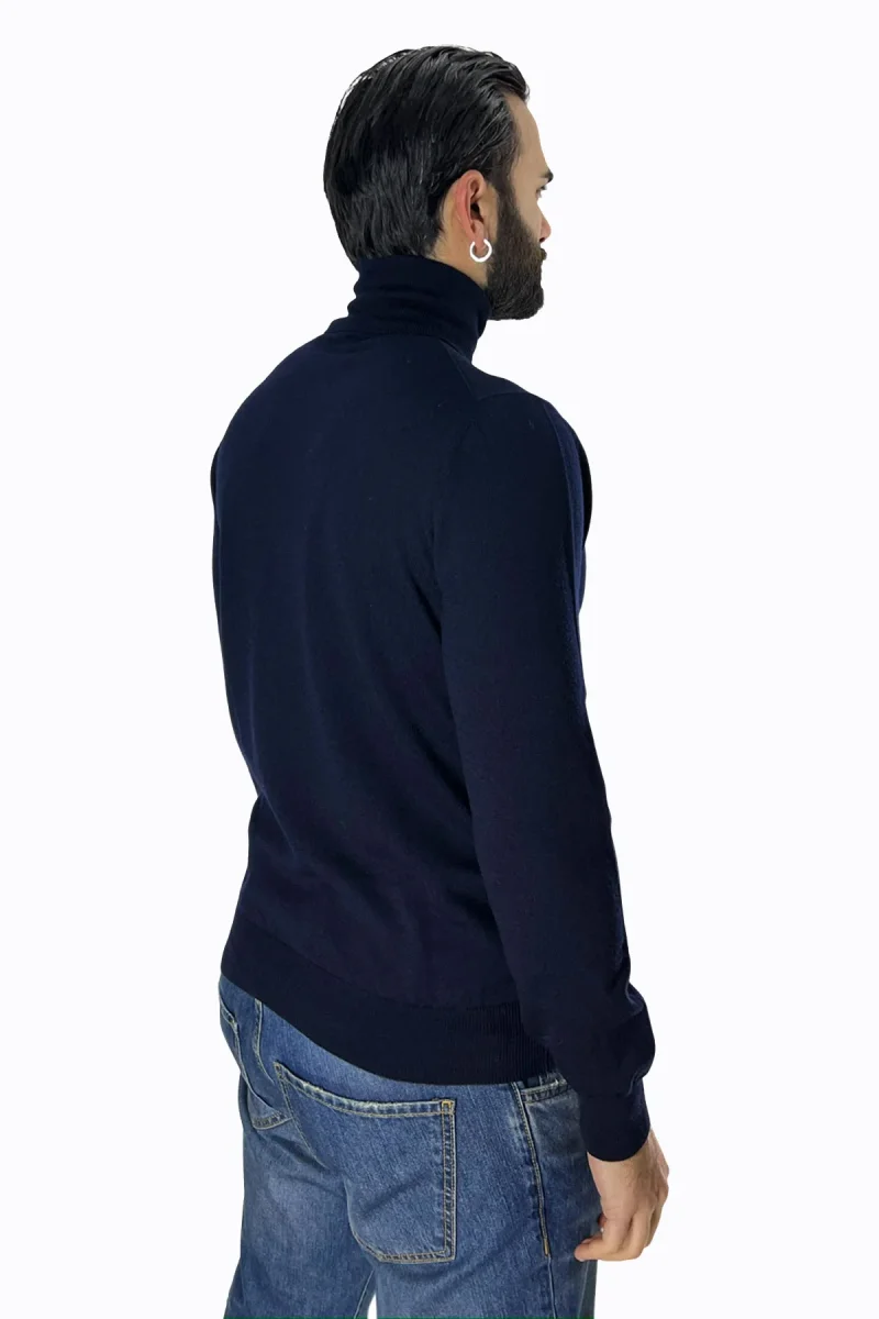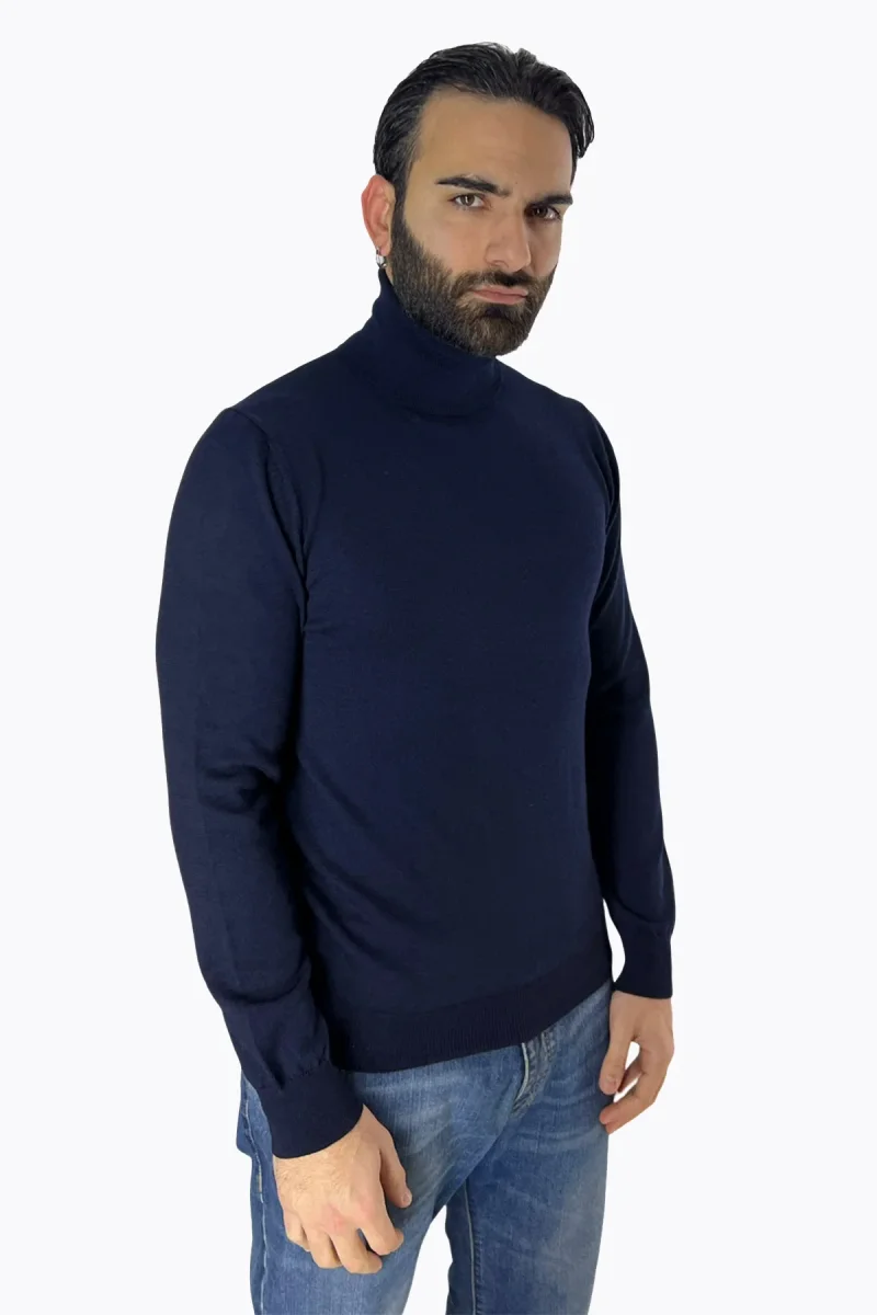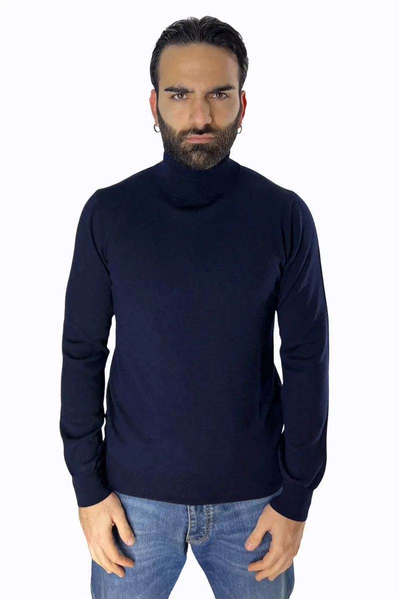 MAGLIONCINO COLLO ALTO DA UOMO BLU 100% LANA MERINOS SLIM FIT MADE IN ITALY