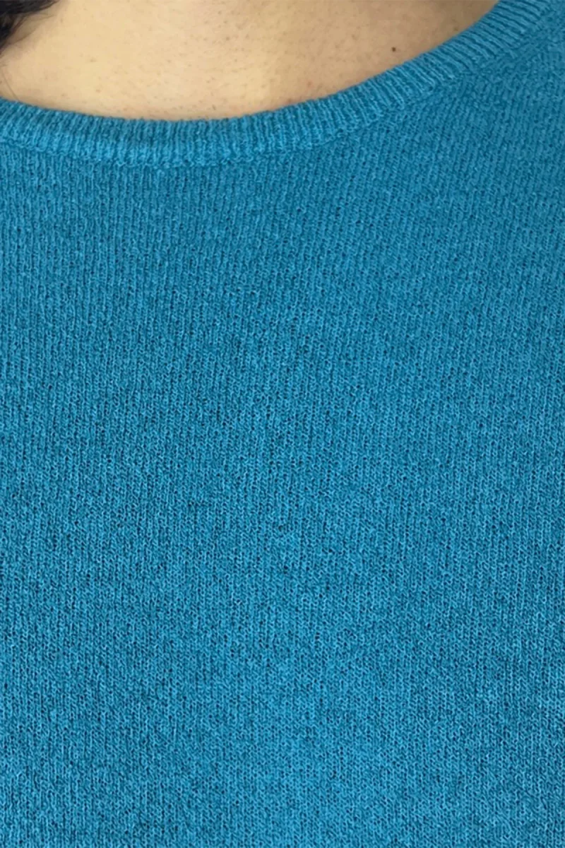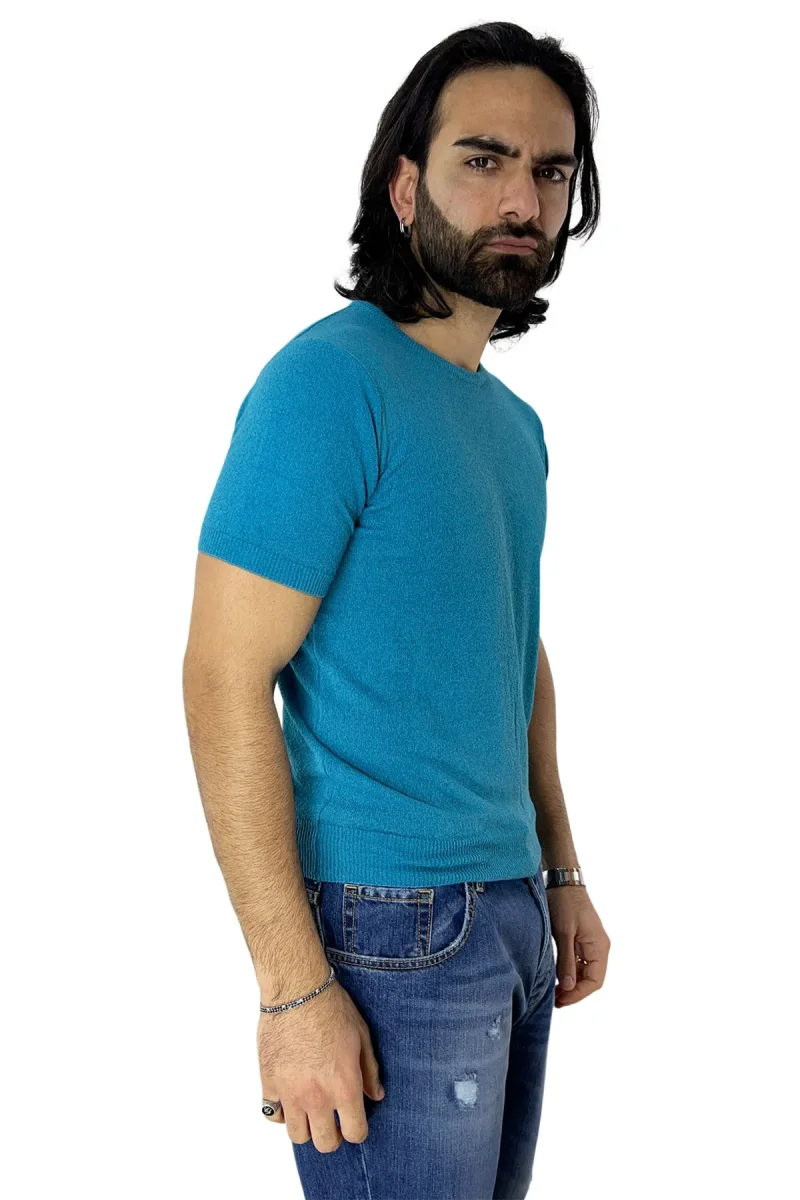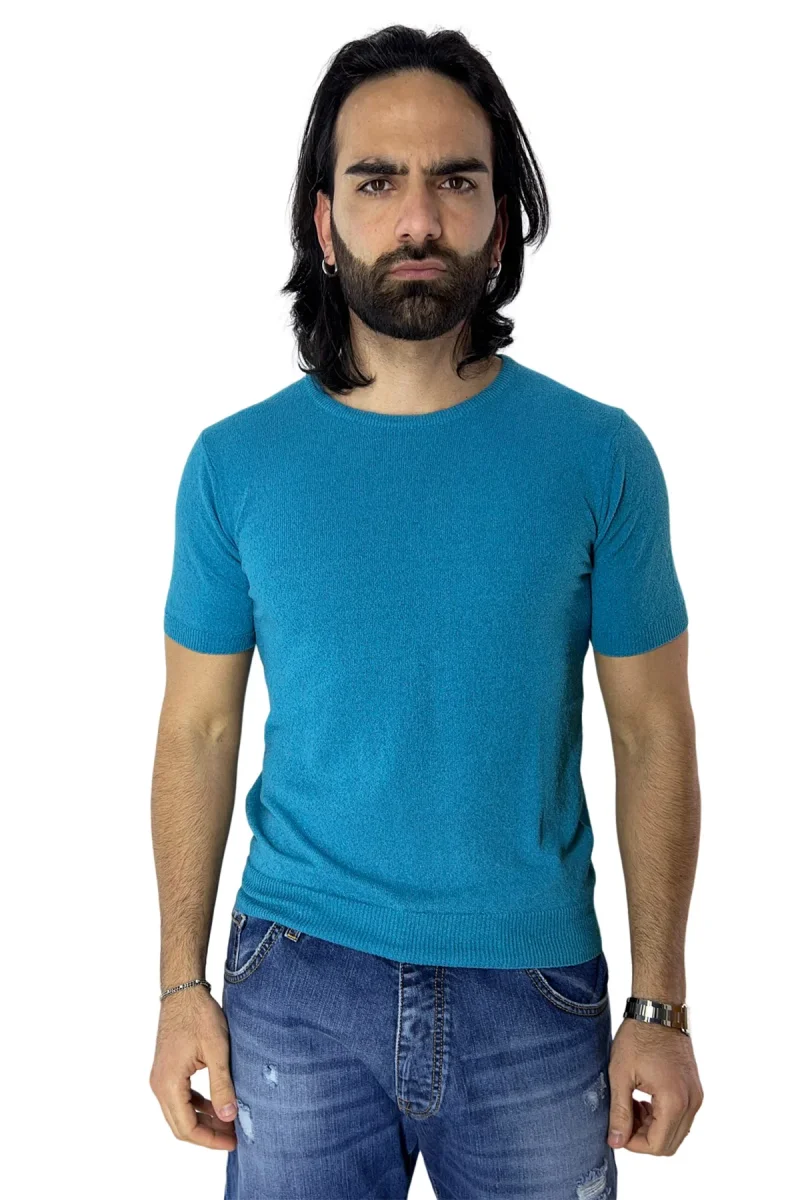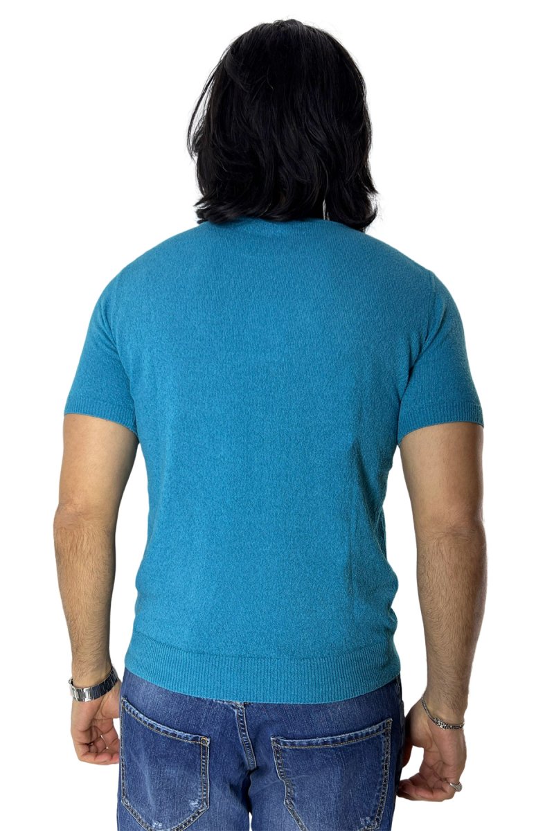 MAGLIONCINO DA UOMO AZZURRO MEZZE MANICHE 100% COTONE EFFETTO SPUGNA