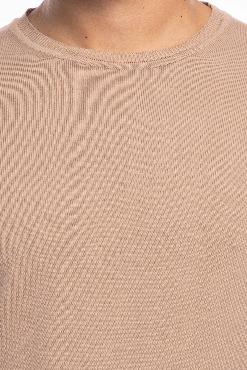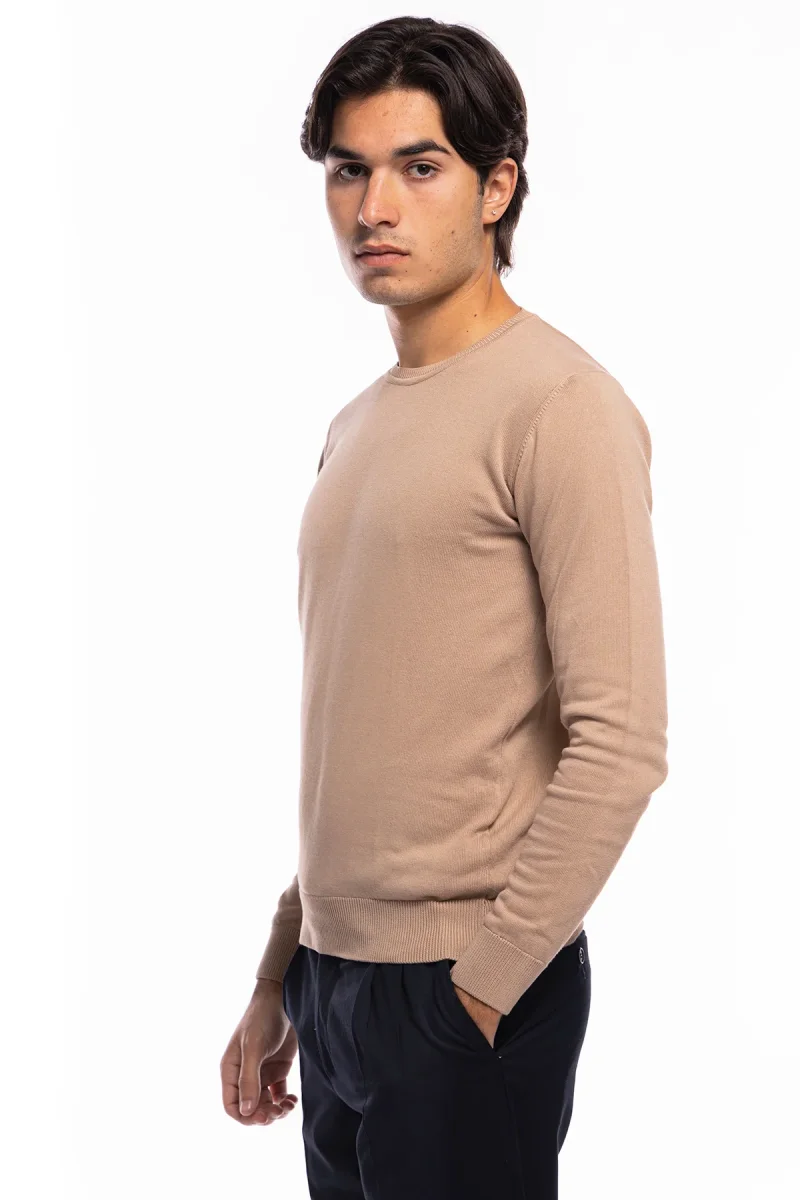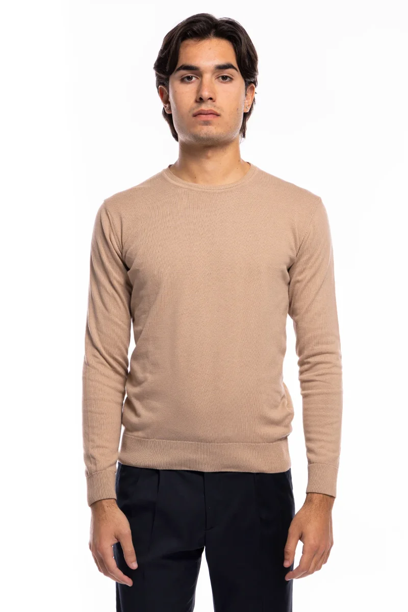 Maglioncino da uomo Beige maniche lunghe 100% cotone di filo tinta unita finezza 12