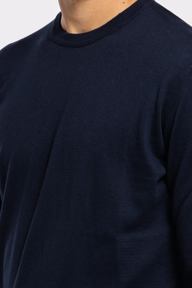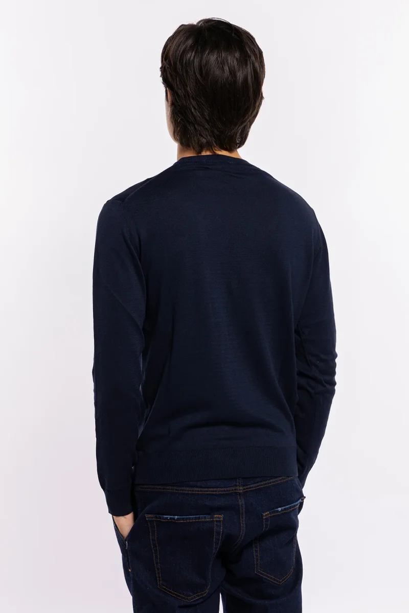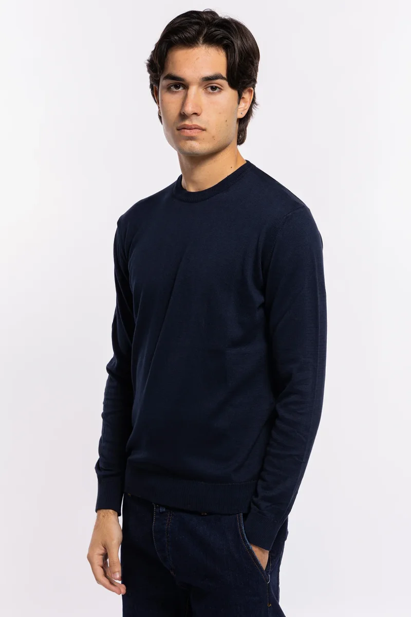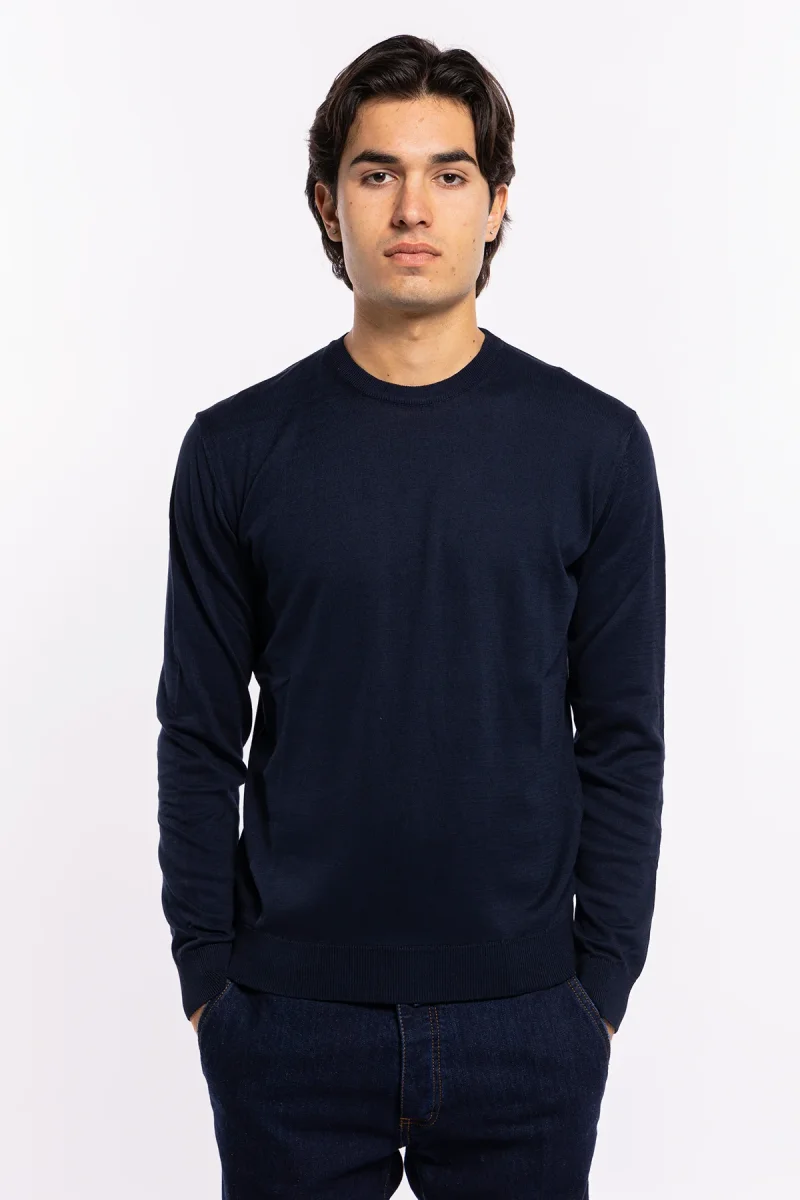 Maglioncino da uomo blu notte maniche lunghe 100% cotone di filo tinta unita finezza 14
